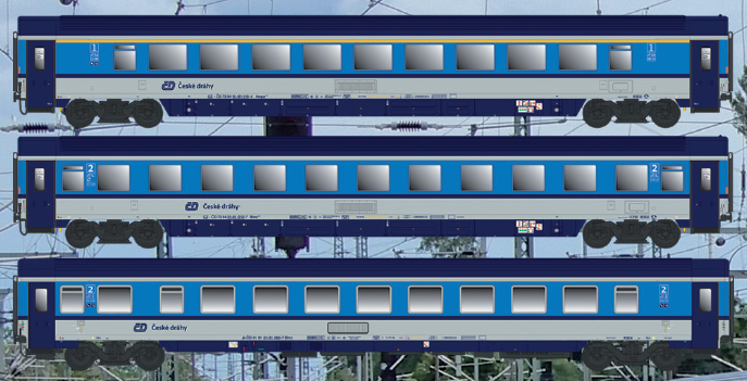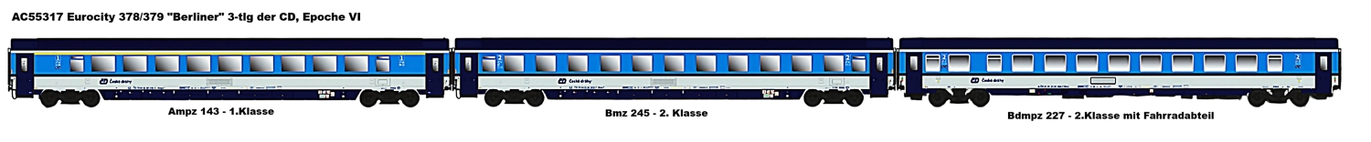 Bestehend aus 1. Klasse Wagen Typ Ampz 143, 2. Klasse Wagen Typ Bmz 245, 2. Klasse Wagen Typ Bdmpz 227 mit Abteil f�r den Fahrradtransport"