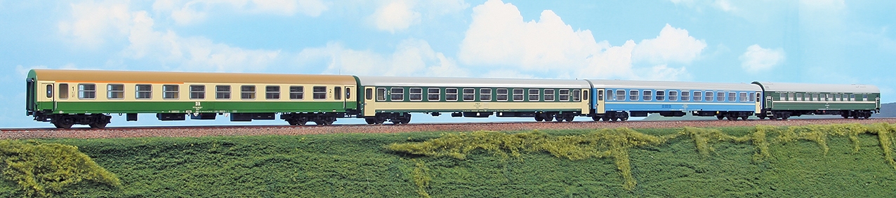 3-teilig mit 1./2. Klasse Wagen der DR, 2. Klasse Wagen und einem Liegewagen der PKP, einem Schlafwagen der SZD"