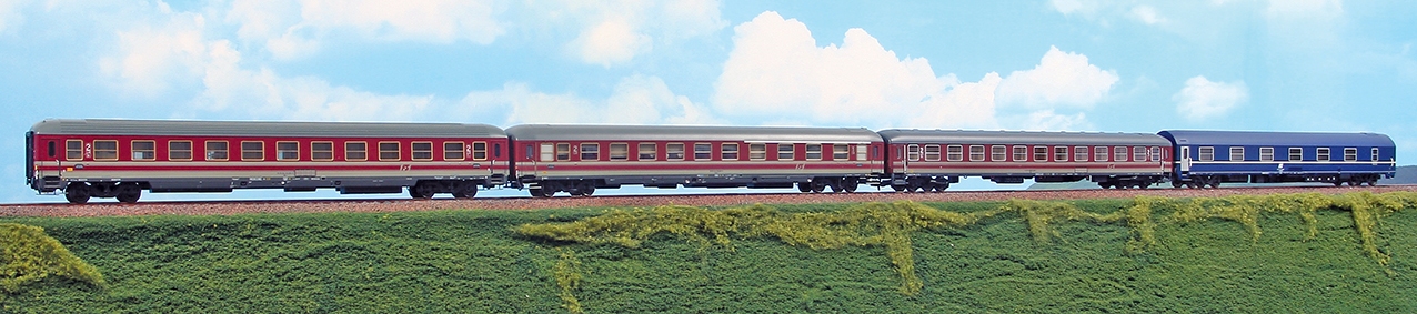 4-teilig mit Liegewagen 2. Klasse, Liegewagen 1./2, Klasse mit Fiat-Drehgestellen, Liegewagen 2. Klasse mit Drehgestellen der Bauart 24, einem Schlafwagen Typ MU