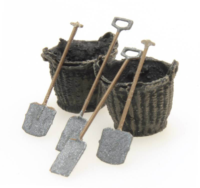 2x Flachschaufel, 2x Korb und 2x Grabschaufel