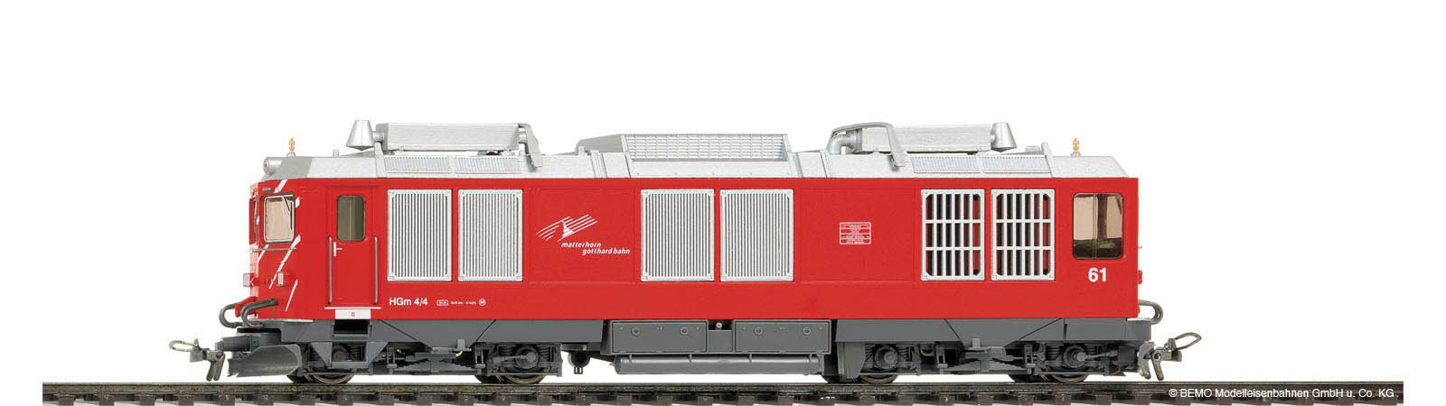 Modell in der aktuellen Ausführung mit Rechtecklampen und zusätzlichen Dachaufbauten, so wie die Lok auch auf der Furka-Bergstrecke zu beobachten war.