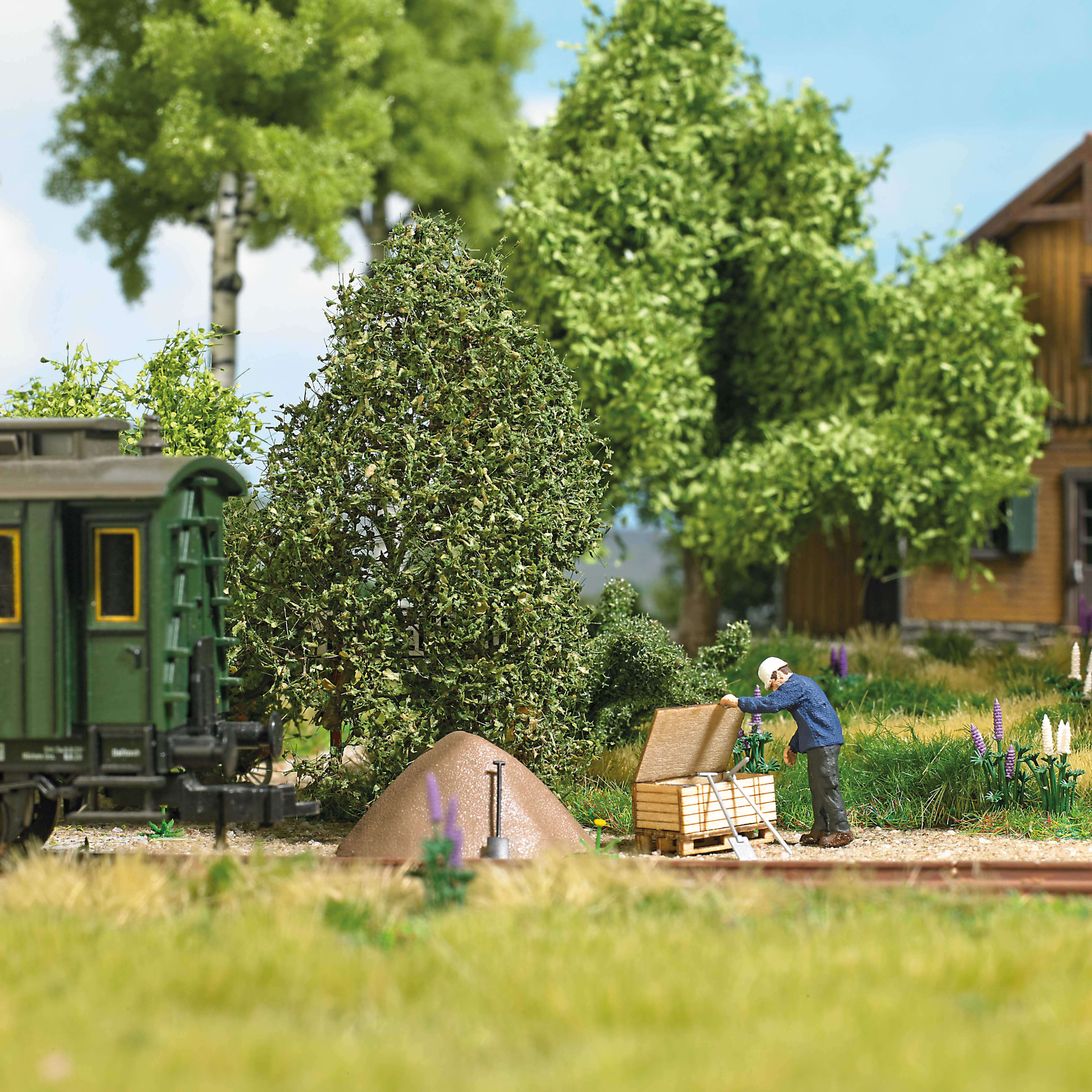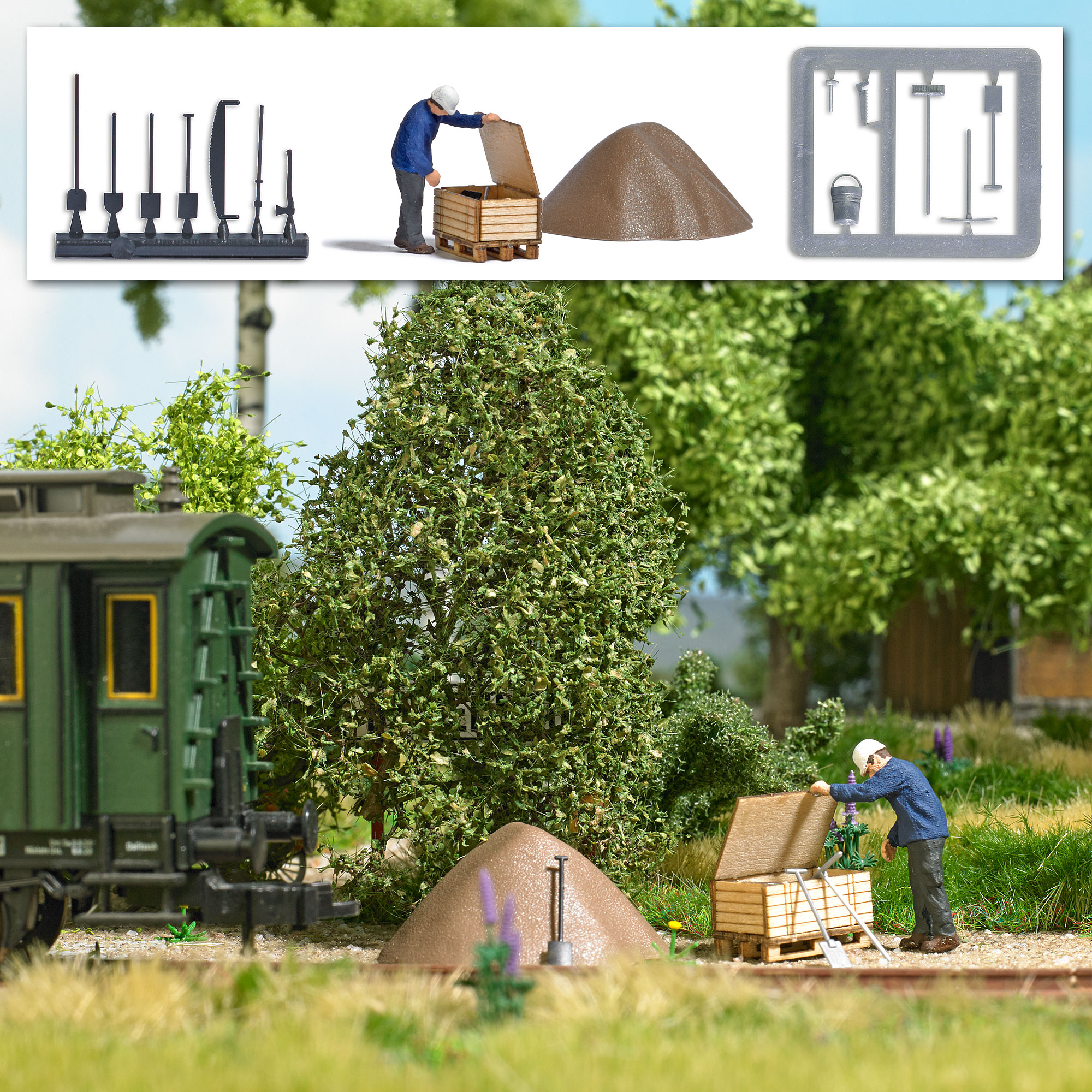 Mann und Mädchen, die Beeren von einem Feld mit Waldheidelbeeren (ca. 80 x 70 mm) pflücken.