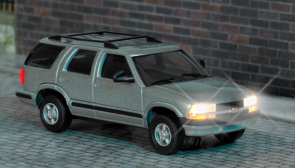 Fahrzeug mit leuchtenden Scheinwerfern und Rückleuchten. Anschlussfertig für 14-16 V.
