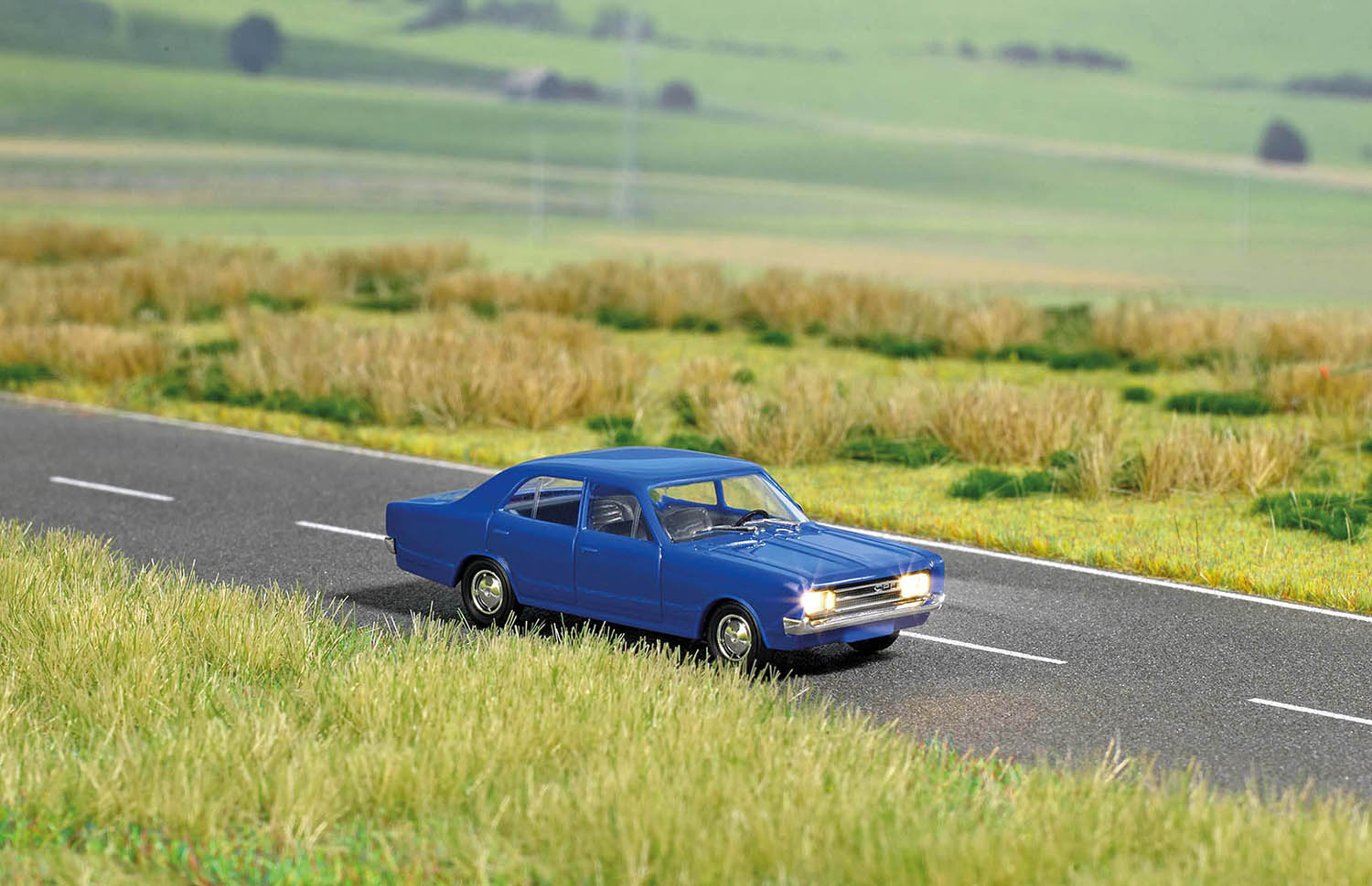 Fahrzeug mit leuchtenden Scheinwerfern und Rückleuchten. Anschlussfertig für 14-16 V.