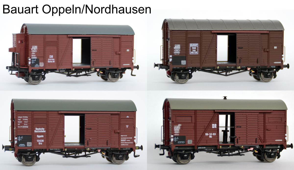 H0 - 3-tlg. Güterwagenset Oppeln Gmrhs30 Güterwagen der DB; Ep. III (neue Luftungsklappen)