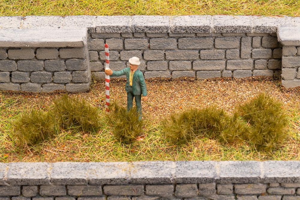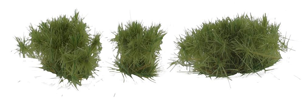 Kleine, unregelmäßige Grasbüschel in dunklem Grün zum Aufkleben – ideal, um realistischen Wildwuchs nachzubilden. Ob an Wegen, auf Wiesen, in Mooren oder anderen naturbelassenen Landschaften: Sie beleben die Szene und verleihen der Modellanlage das gewisse Etwas.