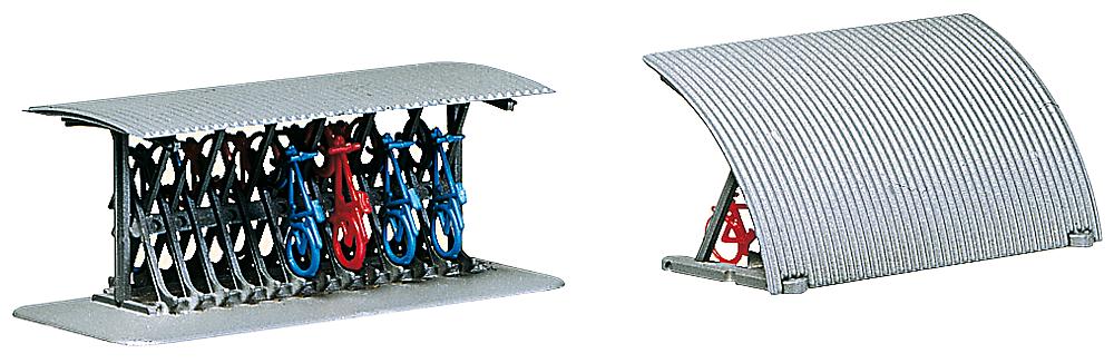 Die beiden Radständer mit den 16 Fahrrädern sind Ausschmückungsdetails, die wohl auf jeder Anlage an vielen Plätzen für noch mehr Realität in der Modellwelt sorgen.