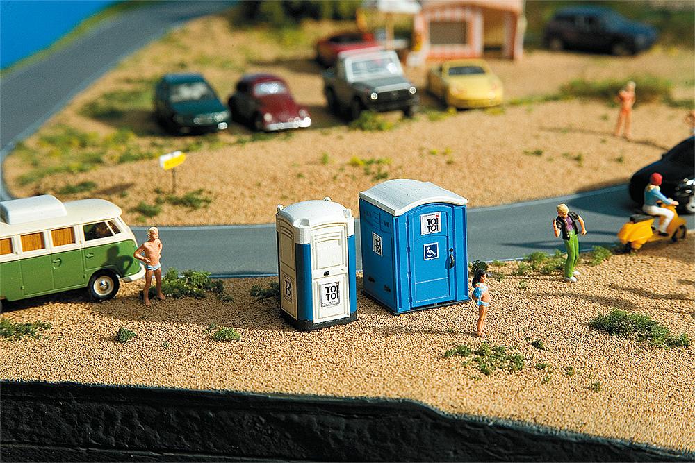 3 Standard-Kabinen und 1 Toilettenkabine für Rollstuhlfahrer. Ideal einsetzbar auf Baustellen oder bei Veranstaltungen und Kirmes.