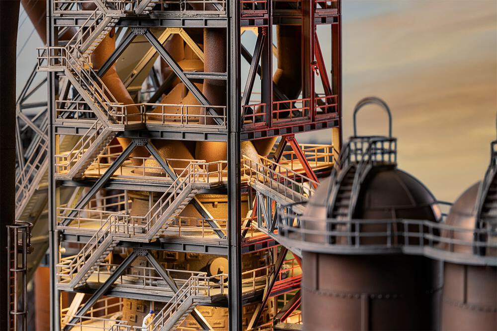 Für unser Jubiläumsmodell 2026 lassen wir Industriegeschichte lebendig werden! Orientiert haben wir uns dabei am Meidericher Hüttenwerk in Duisburg, gegründet von August Thyssen zu Beginn des 20. Jahrhunderts. Jahrzehntelang wurde dort Roheisen erzeugt – bis 1985 der letzte von fünf Hochöfen erlosch. Das Modell bildet den legendären Hochofen 2 des Werks nach und lässt die Montanindustrie in die Modellwelt einziehen. Ein technisch und historisch faszinierendes Thema, das ganz bewusst zu unserem 80-Jährigen Jubiläum weit über unsere regulären Neuheiten hinausreicht. Zugleich schlagen wir den Bogen zu einem weiteren historischen Meilenstein: 75 Jahre Montanunion. Die Europäische Gemeinschaft für Kohle und Stahl, Keimzelle der heutigen EU, öffnete einst den zollfreien Zugang zu Kohle und Stahl – und damit Wege zu wirtschaftlicher Einigung und dauerhaftem Frieden in Europa. Ein Modell mit Geschichte, Vision und Gewicht – für Sammler, Geschichts- und Technikbegeisterte und alle, die eine Herausforderung suchen!
