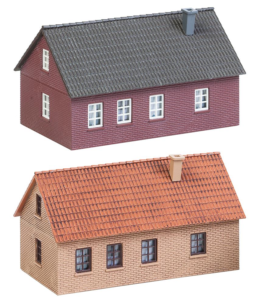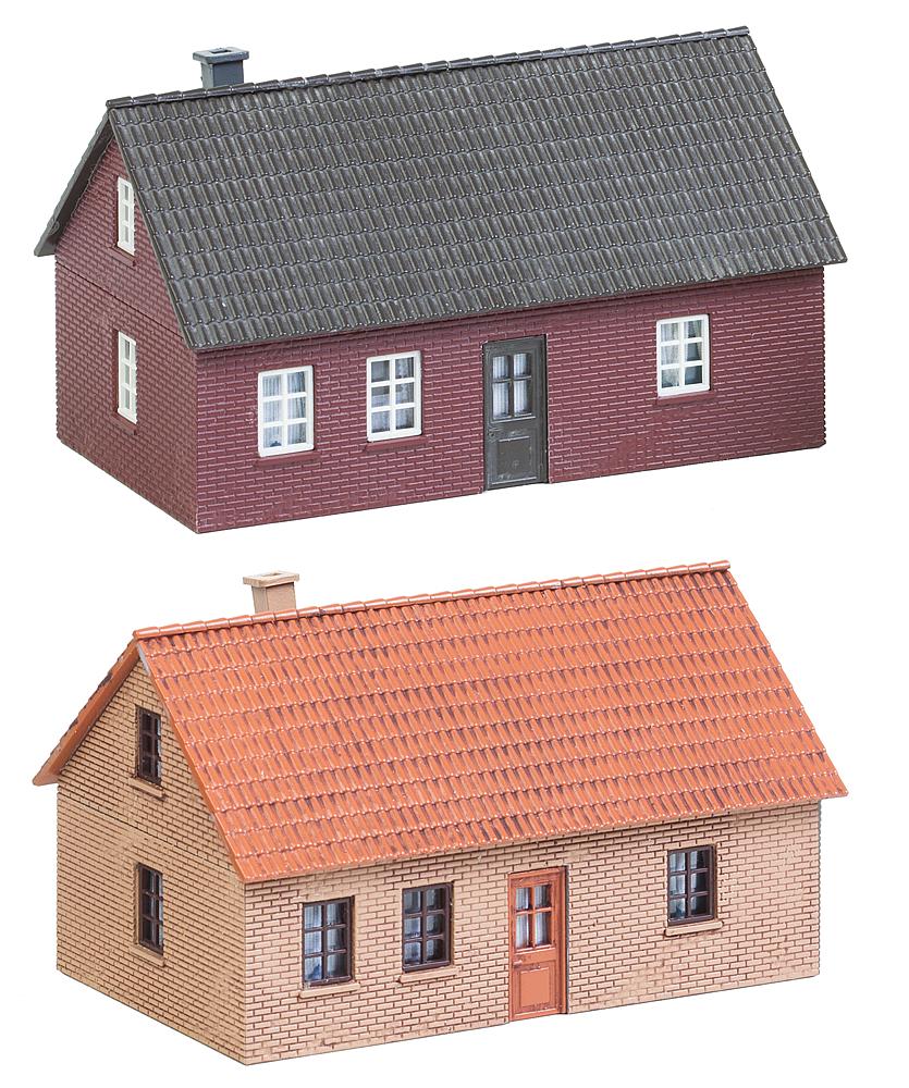 Set mit zwei einstöckigen, mit Klinkerfassaden ausgestatteten Häusern mit Satteldach. Die solide Backsteinoptik oder die typisch friesisch-rote Farbgebung orientieren sich an der Architektur Norddeutschlands.