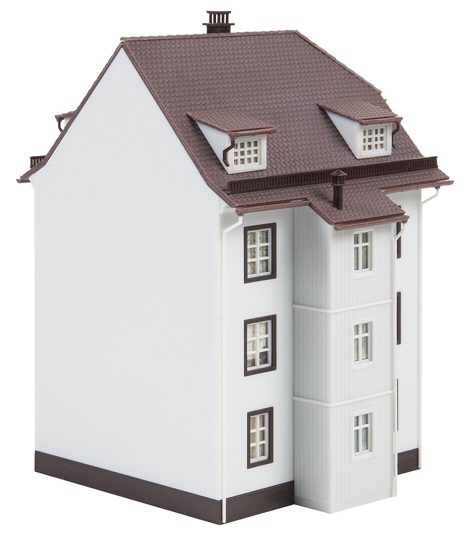 127 Einzelteile in 4 Farben, Fensterteile, 1 Gardinenmaske und 1 Bauanleitung. Verwenden Sie zum Basteln FALLER - Plastikkleber.
