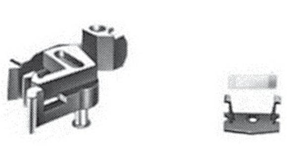 PROFI-Kupplung mit Blatt-Richtfeder und Abdeckplatte (mit langen Haltestegen). Zum Umbau von zwei- und dreiachsigen FLEISCHMANN-Wagen mit einer Länge über Puffer von max. 70 mm, die mit der Standard-Kupplung 9521 ausgerüstet sind. Gegenüber der Kupplung 9541 ergibt sich ein nochmals verkürzter Fahrzeugabstand.