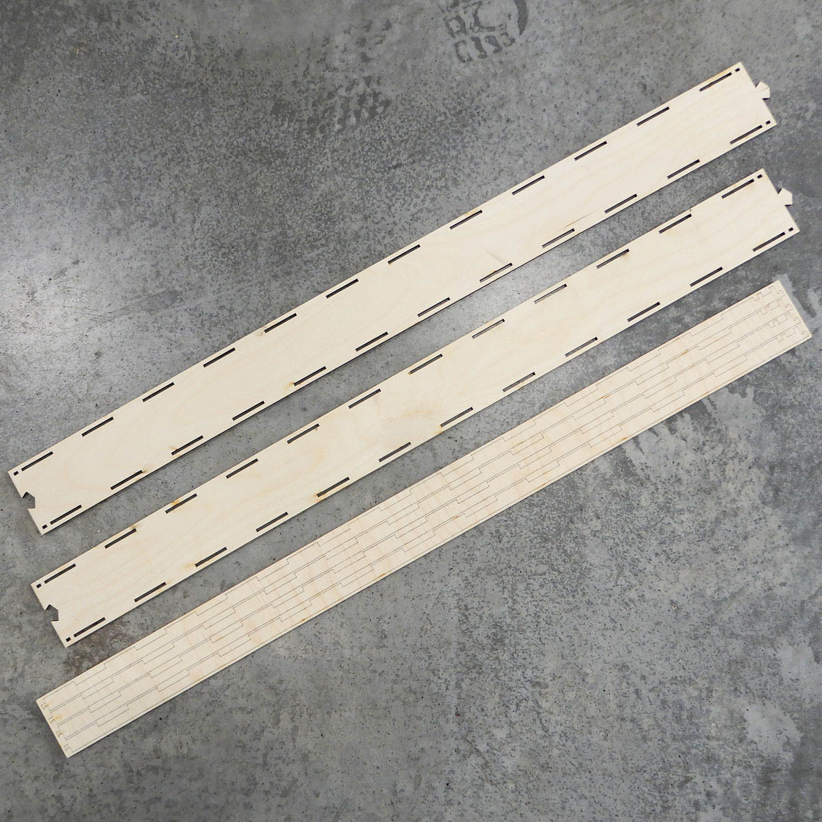 Die Segmente gibt es 1- und 2-gleisig, sowie als Gerade und für Bögen. Diese sind jeweils in unterschiedlichen Längen und Radien verfügbar, welche sich alle untereinander kombinieren lassen. Bei der Verwendung als Gleiswendel erreichen Sie große Höhenunterschiede auf kleinstem Raum. Siehe dazu unser System Rondela, siehe Seite 19-22. Die I-Track Segmente sind aus hochwertigem Sperrholz gelasert und werden als Bausatz mit einer bebilderten Bauanleitung geliefert. Dank der computergestützten Produktion passt alles nahtlos zusammen. Es ist kein Schneiden, Schleifen oder Bohren nötig. Die einzelnen Segmente verkleben Sie nach dem Zusammenbau einfach mit Hacker Sekundenkleber, oder handelsüblichem Holzleim.