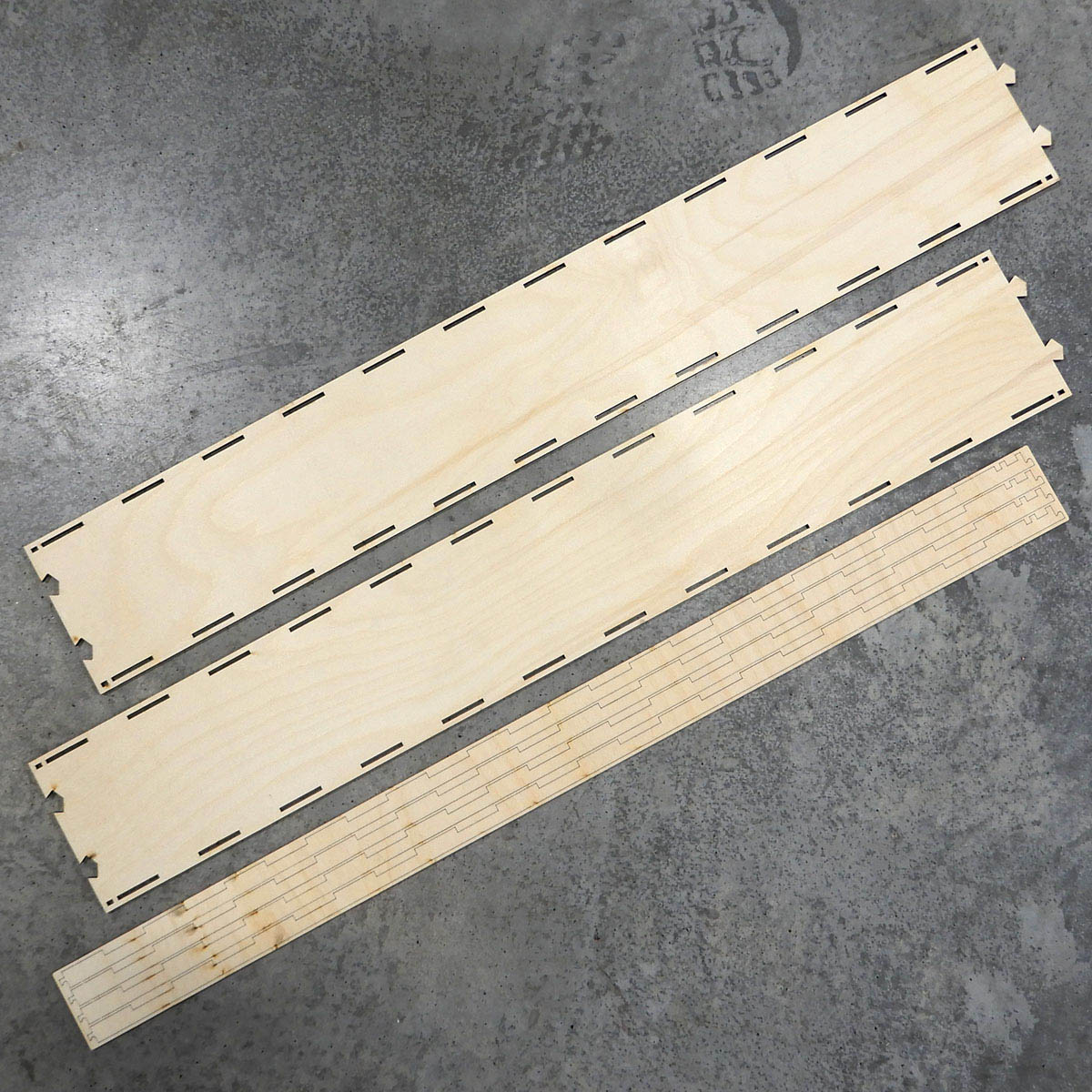Die Segmente gibt es 1- und 2-gleisig, sowie als Gerade und für Bögen. Diese sind jeweils in unterschiedlichen Längen und Radien verfügbar, welche sich alle untereinander kombinieren lassen. Bei der Verwendung als Gleiswendel erreichen Sie große Höhenunterschiede auf kleinstem Raum. Siehe dazu unser System Rondela, siehe Seite 19-22. Die I-Track Segmente sind aus hochwertigem Sperrholz gelasert und werden als Bausatz mit einer bebilderten Bauanleitung geliefert. Dank der computergestützten Produktion passt alles nahtlos zusammen. Es ist kein Schneiden, Schleifen oder Bohren nötig. Die einzelnen Segmente verkleben Sie nach dem Zusammenbau einfach mit Hacker Sekundenkleber, oder handelsüblichem Holzleim.