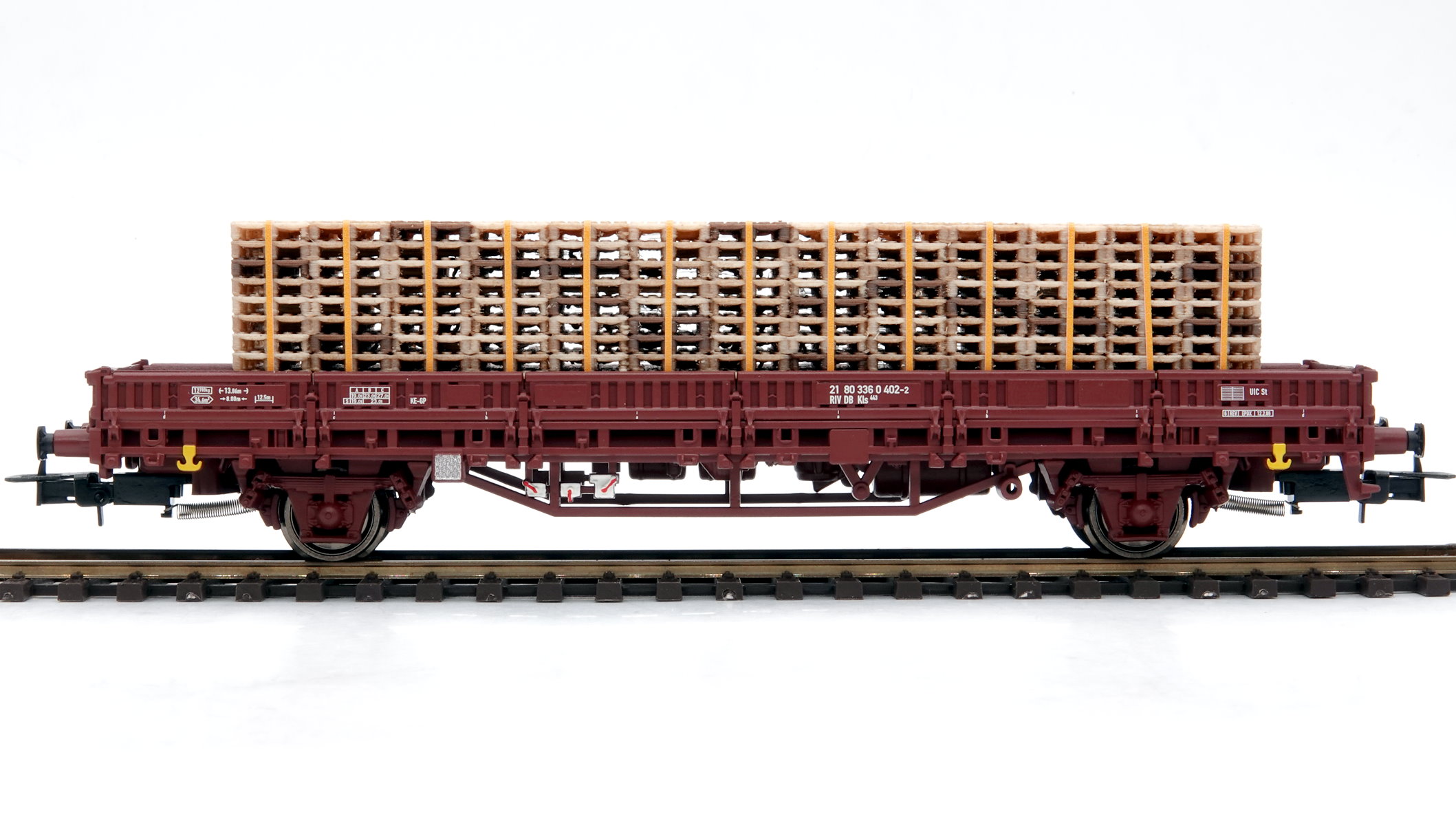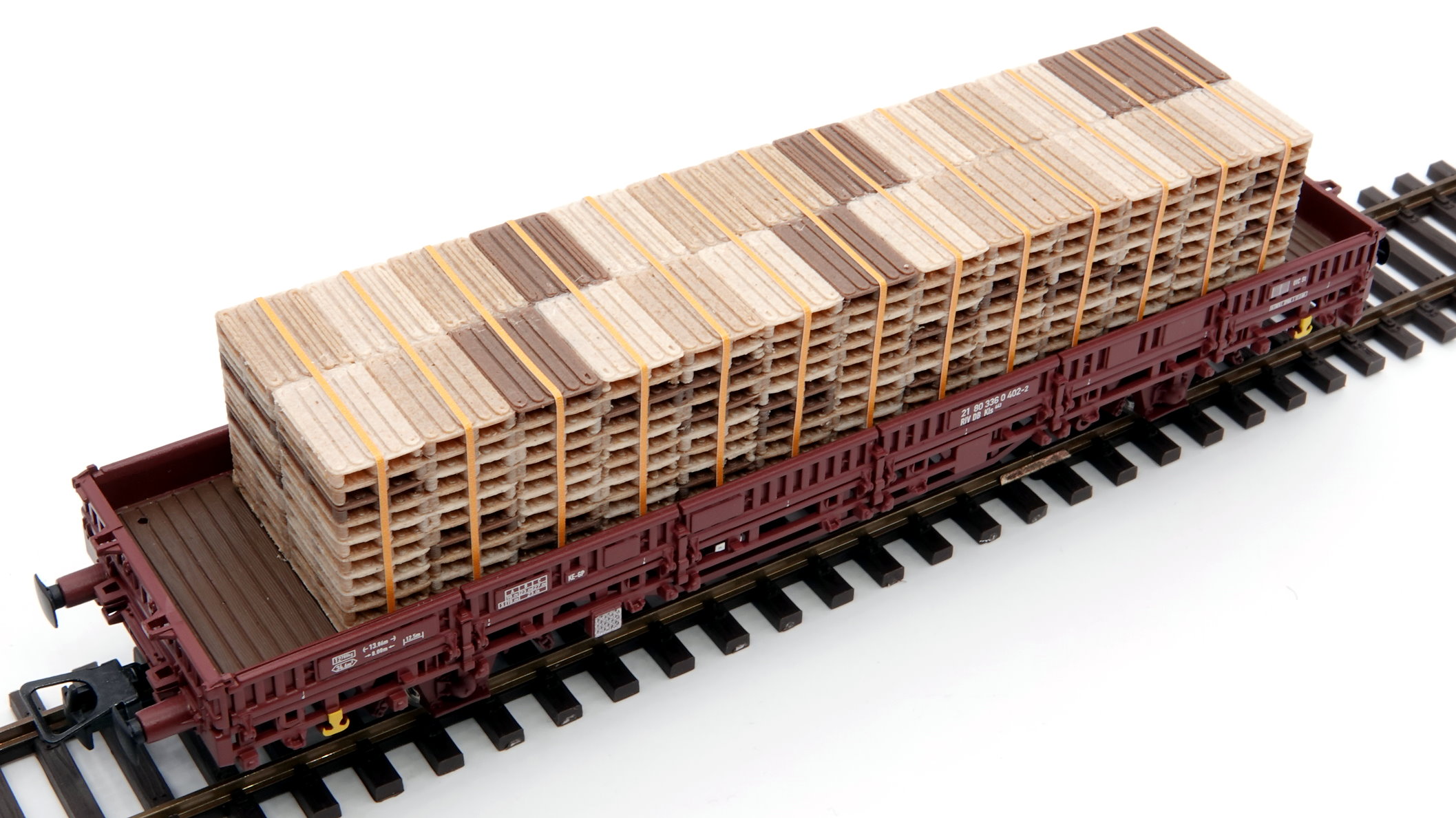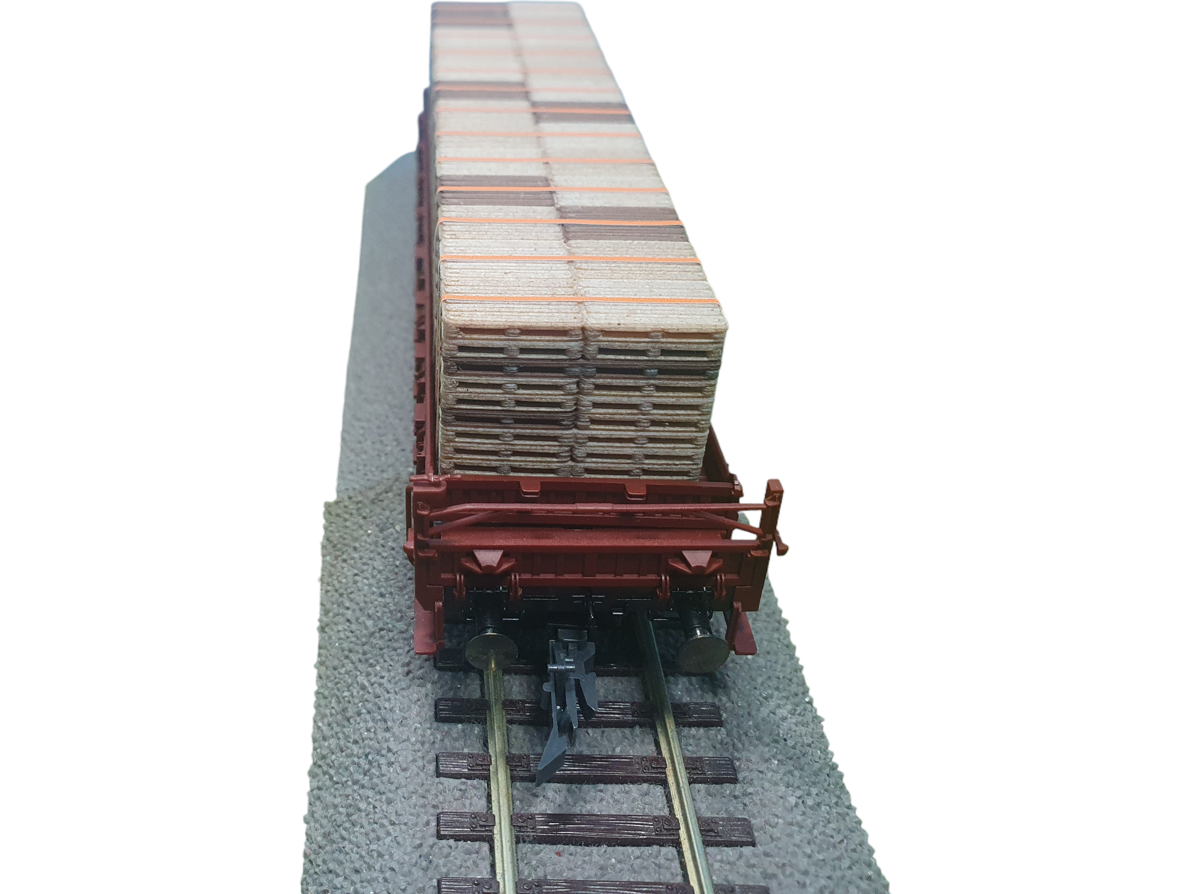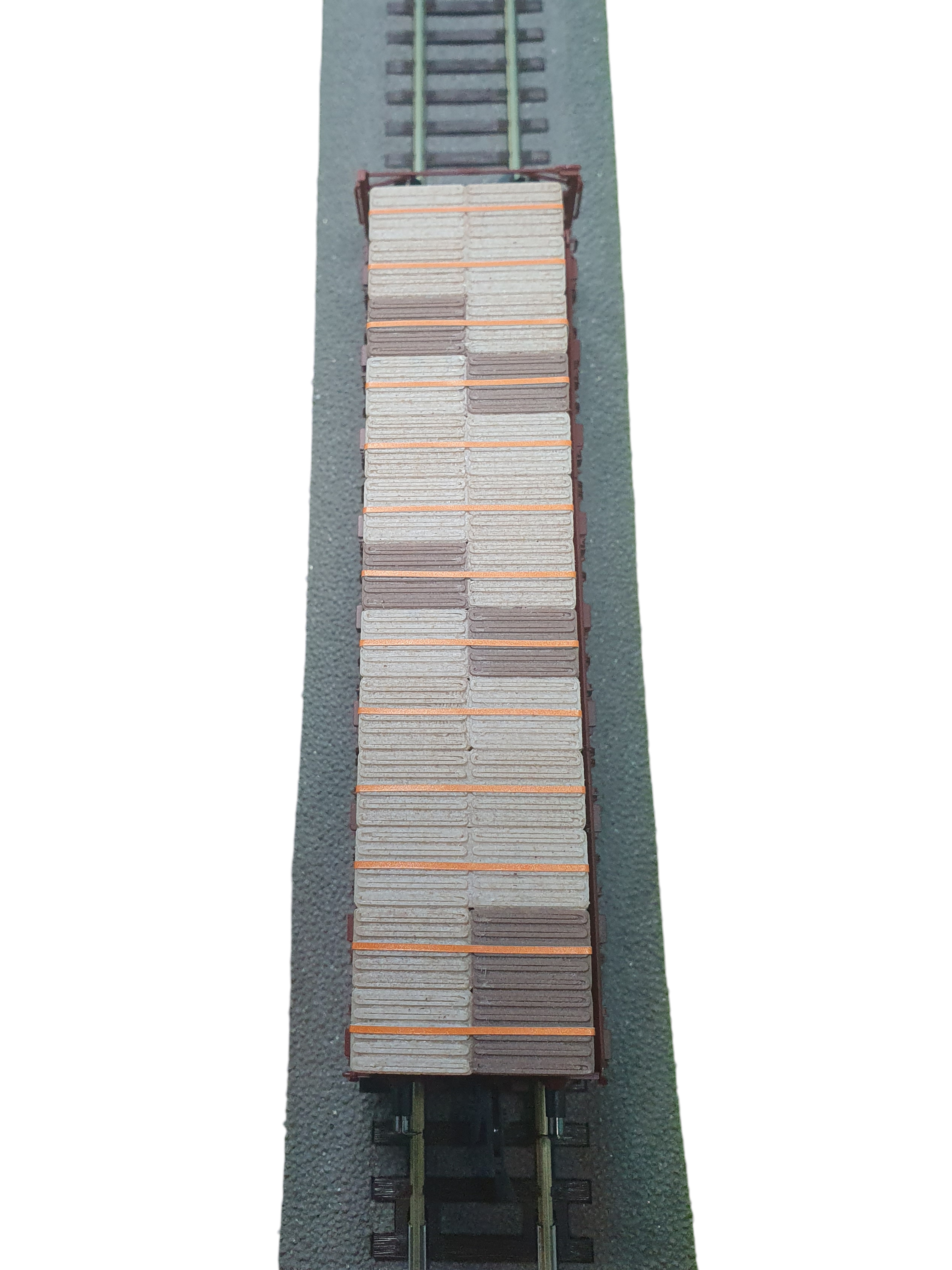 Palettenstapel in drei Holztönen für besonders realistische Wirkung: gesamt 260 Europaletten gestapelt mit Zurrbändern fertig montiert