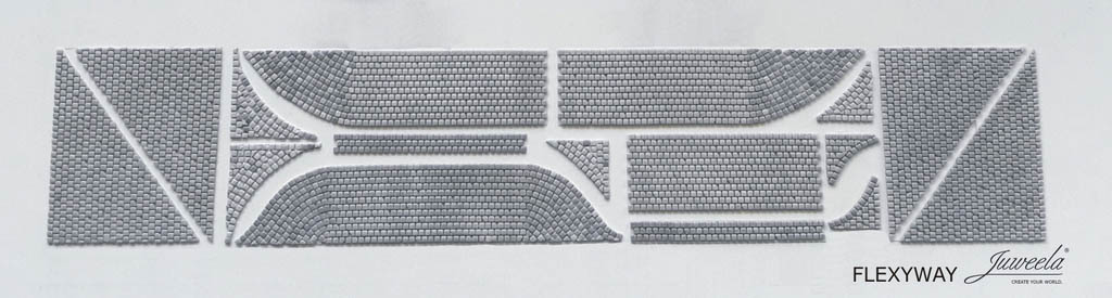 Flexyway sind feste Juweela Steine, die einzeln auf einer dünnen Trägerfolie sitzen. Das macht das komplette Segment in-sich-selbst-flexibel. Jeder Stein kann einzeln entnommen werden: Schlaglöcher, Schäden, Krater oder die Baustelle können also da sein wo gewünscht.