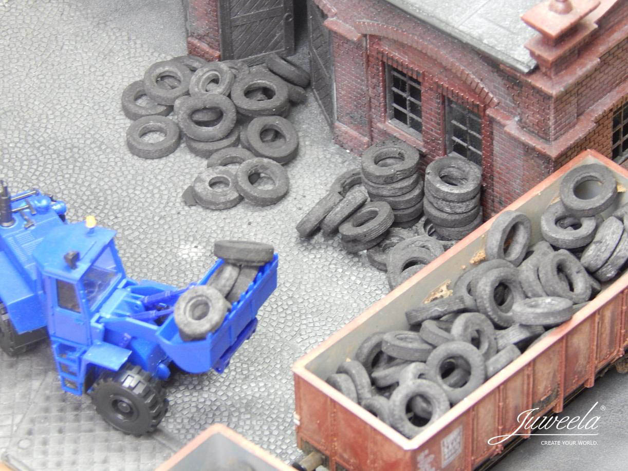 Altreifen, Altreifen, Altreifen. Hier sind die Mindest-Profiltiefen deutlich unterschritten. Daher nur noch verwendbar als Ladegut, für den Reifenstapel um die Ecke, für den Schrottplatz, für die Rennpiste oder einfach nur für die Gestaltug des Dioramas.