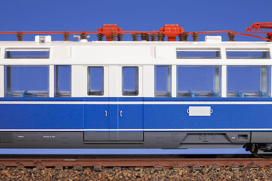 Das Vorbild:Anfang der 1930er Jahre ließ die Deutsche Reichsbahn insgesamt 5 besondere Aussichttriebwagen bauen, bei denen durch entsprechende wagenbauliche Gestaltung gute Sichtverhältnisse von allen Plätzen geschaffen wurden. Zwei dieser Triebwagen wurden für den elektrischen Betrieb eingerichtet, die drei anderen hatten dieselhydraulischen Antrieb. Die beiden elektrischen Aussichtstriebwagen wurden 1933 für die Reichsbahndirektion München in Auftrag gegebenund 1935 mit den Betriebsnummern elT 1998 und 1999 geliefert. Hersteller waren die Heidelberger Waggonfabrik Fuchs (wagenbaulicher Teil) und die AEG Berlin (elektrische Ausrüstung). 1940 erfolgte eine Umnummerierung in ET 91 01 und ET 91 02. Der nur kurz im Einsatz gewesene ET 91 02 brannte nach einem Bombenangriff auf München im Bw München Hbf aus und wurde am 9. Juli 1943 ausgemustert. Der Einsatzbereich des verbliebenen ET 91 01, welcher ab 1. Januar 1968 seine dritte und letzte Betriebsnummer 491 001-4 erhielt, blieb auf das verhältnismäßig kleine elektrisch betriebene Streckennetz in Süddeutschland und Österreich beschränkt. Erst in den folgenden Jahrzehnten wurden immer mehr Strecken bei der Deutschen Bundesbahn elektrifiziert; dies erweiterte die Einsatzmöglichkeiten auch Richtung Norden. Neben immer weiteren Zielen für Tagesfahrten kamen auch mehrtägige Touristikfahrten hinzu. Auch auf den elektrifizierten Strecken der Schweizerischen Bundesbahnen sowie vielen schweizerischen Privatbahnen konnte der Gläserne Zug ohne große Schwierigkeiten eingesetzt werden. Bis 1995 kam der Gläserne Zug auch in alle 5 neuen Bundesländer sowie am 22.05.92 über Bad Schandau nach Decin in die damalige Tschechoslowakei. Im Laufe seiner 60jährigen Dienstzeit hat sich neben geringfügigen technischen Veränderungen, z.B. bei der elektrischen Dachausrüstung, den Stirnlampen und dem Schürzenbereich, hauptsächlich sein Aussehen durch verschiedene Anstriche auffallend verändert. Durch einen Unfall am 12. Dezember 1995 kam dann sein vorläufiges Aus. Seit der Überführung zum Bahnpark Augsburg wurde sich hier um die museale Aufarbeitung gekümmert. Technische Ausstattung:- Länge über Puffer: 172 mm- Gewicht: 72 g- System: 2-Leiter Gleichstrom- Betriebsspannung: max. 12V Gleichspannung- kleinster fahrbarer Radius: 286 mm- fahrtrichtungsabhängiges Spitzen- und Schlusslicht, Innenbeleuchtung warmweiß- 6polige Digitalschnittstelle gemäß NEM 651, steckbar- Haftreifen: 2 Stück auf dem angetriebenen Drehgestell Oberleitungsbetrieb möglich, Dachstromabnehmer sind elektrisch nutzbar (siehe Montage-Anleitung in der Gebrauchs-Information) Mit dem zum Lieferumfang gehörenden NEM-Schacht und den austauschbaren Radsätzen ohne Ritzel kann das Modell auch als Anhänger betrieben werden. Somit kann der Betrieb auf einer nicht elektrifizierten Strecke, z.B. mit einer vorgespannten Diesellok, nachgebildet werden.
