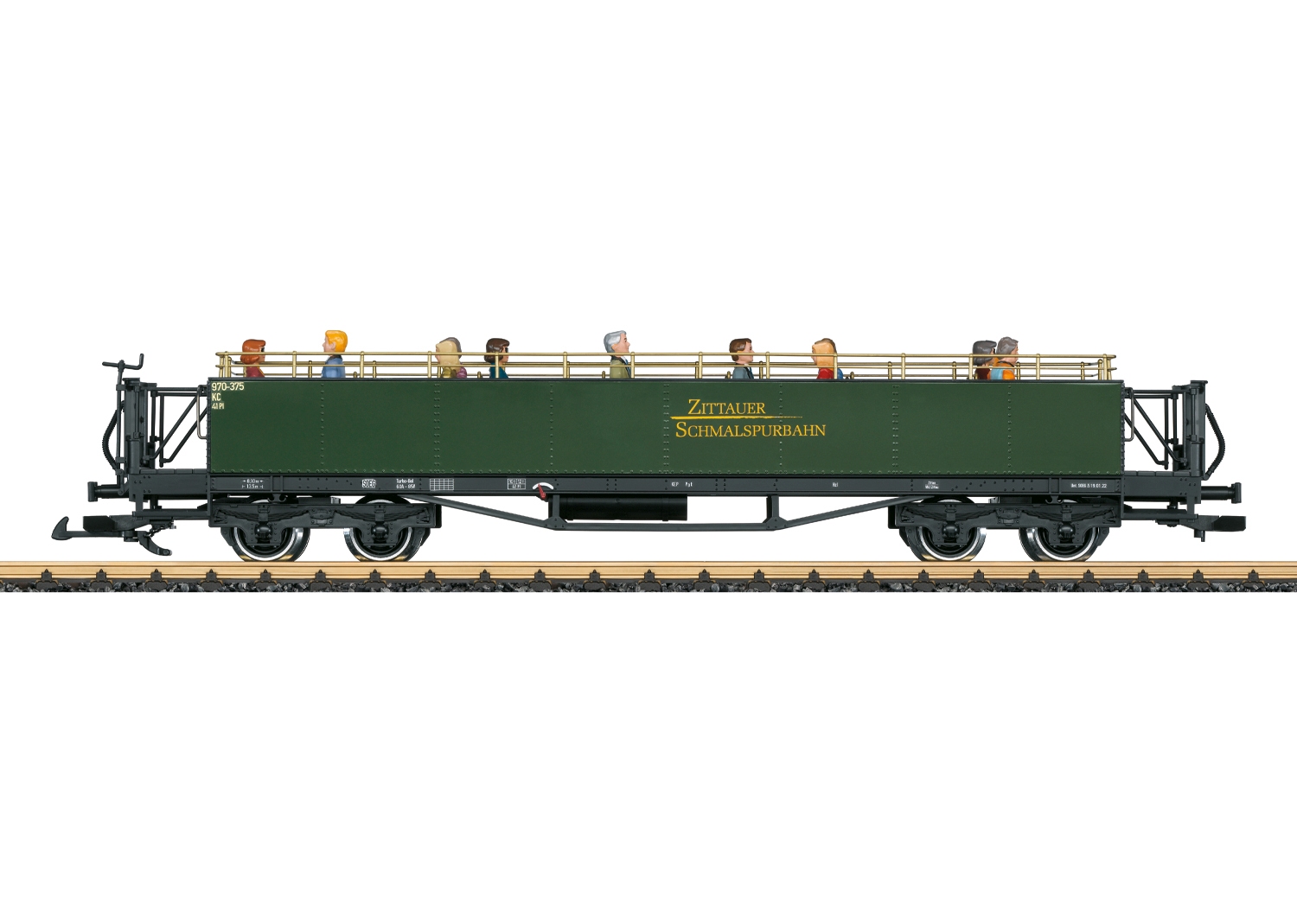Club-Modell 2026 eines offenen Aussichtswagens der SOEG, wie er heute bei der Sächsisch Oberlausitzer Schmalspurbahn im Einsatz ist. Originalgetreue Farbgebung und Beschriftung der Epoche VI. Feindetaillierte, vorbildgetreue Inneneinrichtung. Mit eingebauten Figuren. Metallradsätze. Länge über Puffer 58 cm.