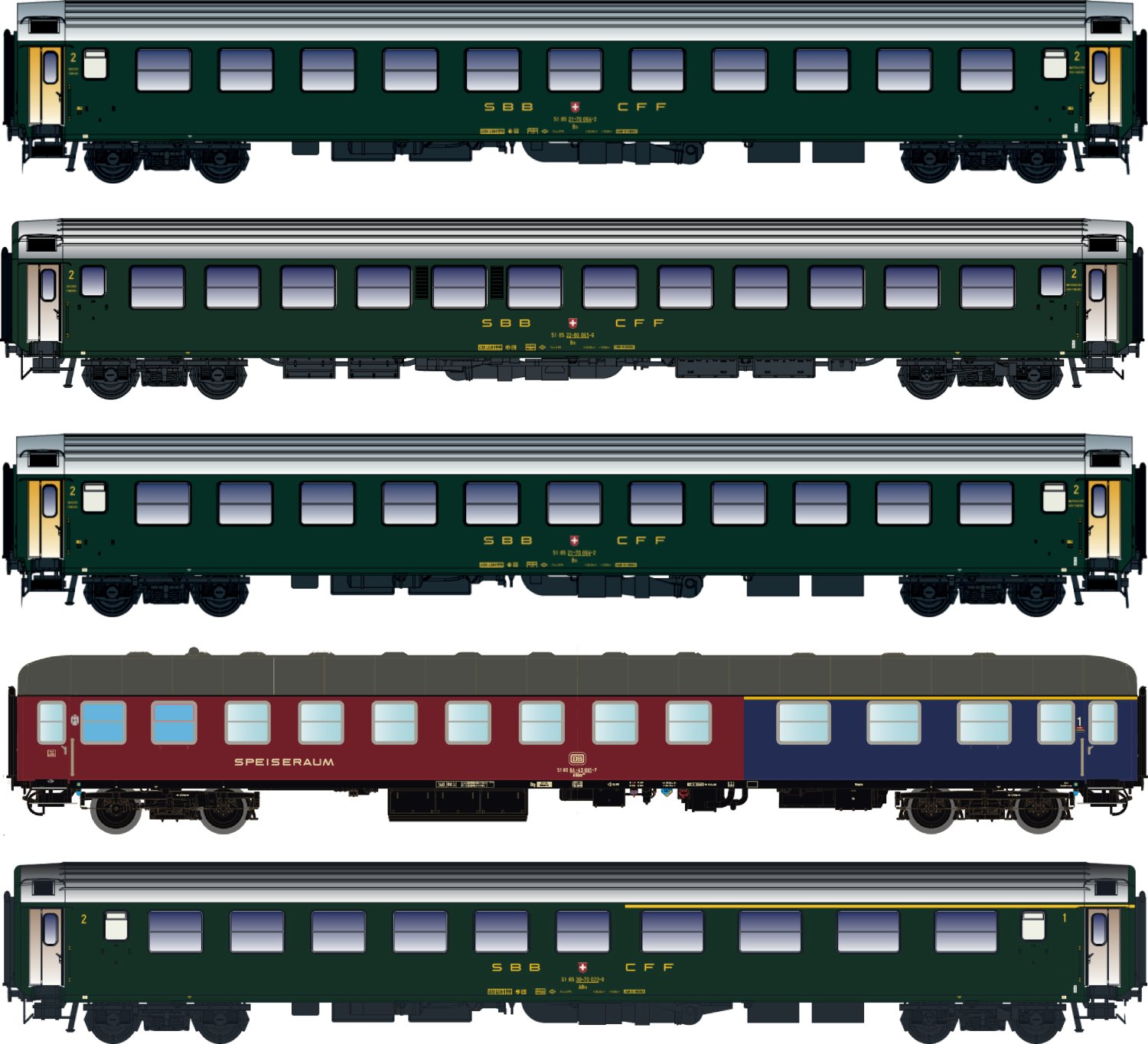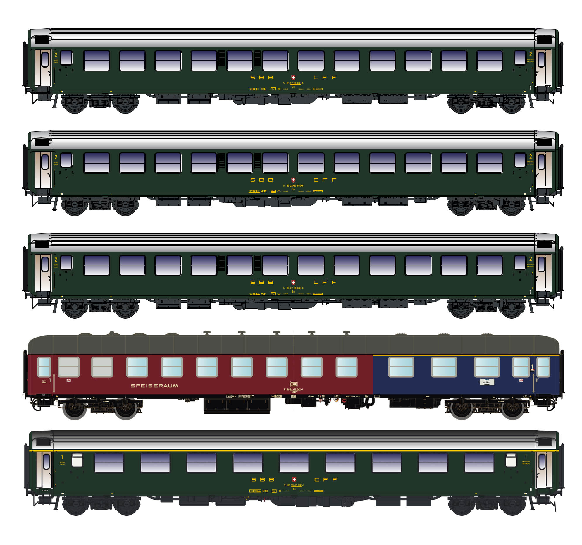 095-LS97032 - H0 - 5er Set Personenwagen DB/SBB, Ep.IVa, D568
