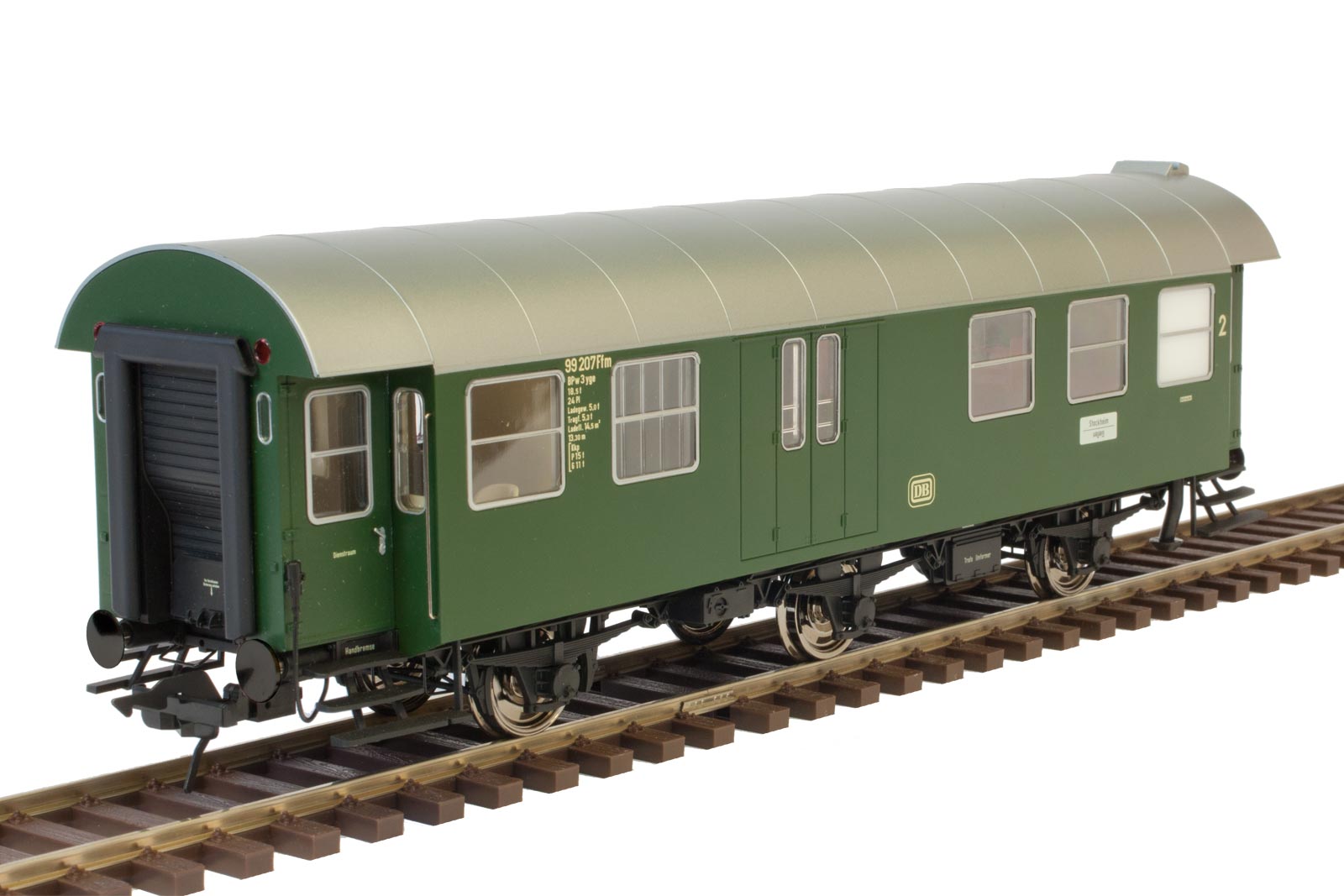 Umbauwagen BD3yge, 3-achsig, 2.Klasse mit Gepäckabteil, DB, Epoche 4, Betr.-Nr. 99 389 Stg, Heimatbahnhof Tübingen, chromoxidgrün RAL6020