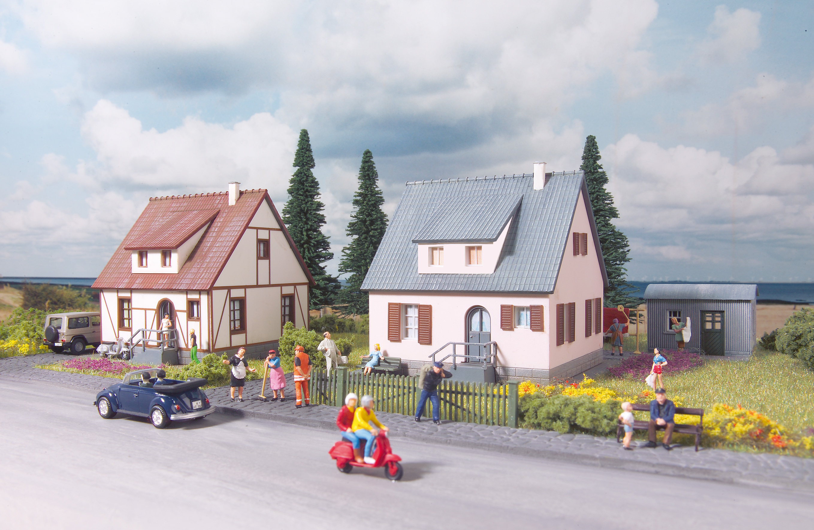 Inhalt:2x Siedlungshäuser1x GeräteschuppenDie beiden Siedlungshäuser können gut im Vorort an der Bahnlinie stehen. Die Bauteile dieses Bausatzes sind teilweise farblich gealtert.