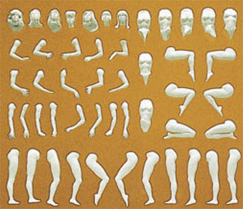 7 unbemalte Miniaturfiguren, Einzelteile aus Polystyrol, Materialfarbe weiß