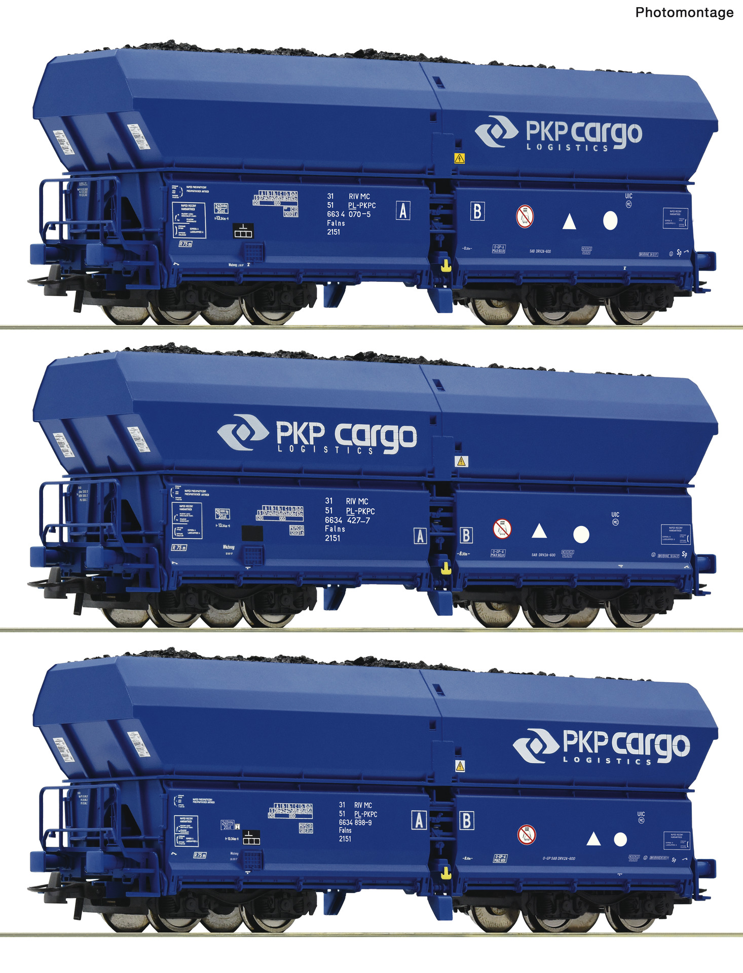 3-teiliges Set Selbstentladewagen, Bauart Falns, der PKP Cargo.