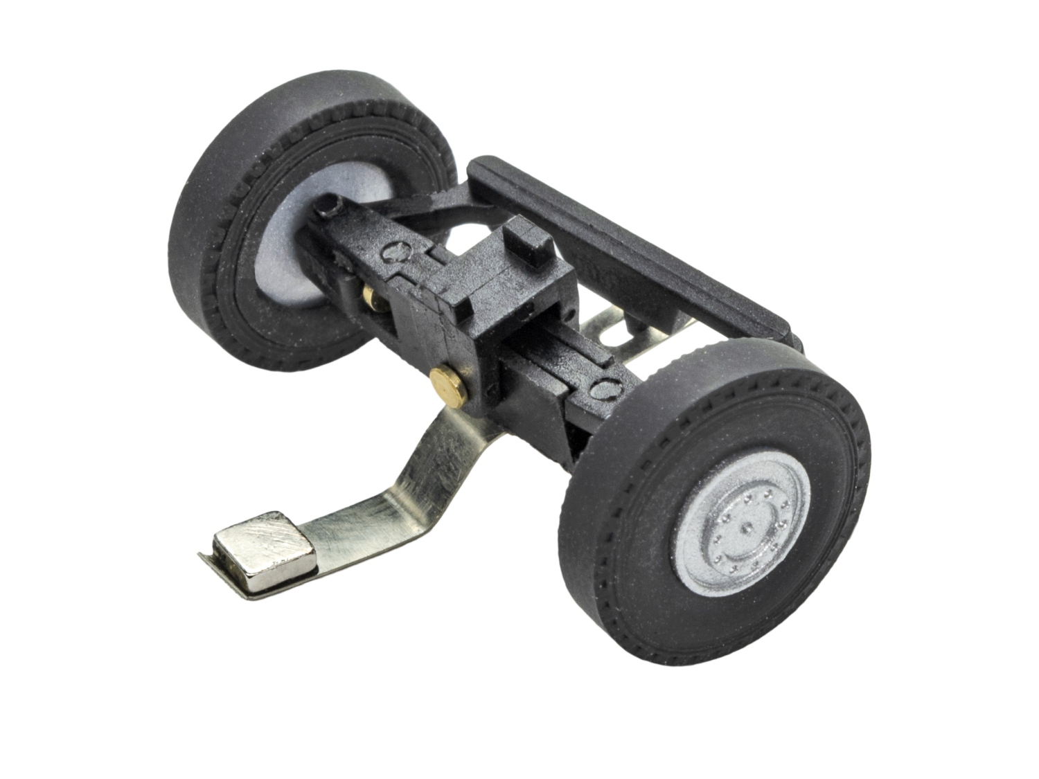 Vorderachse komplett montiert mit Lenkarm und Magnet für CarMotion LKW. Diese Vorderachse ich für Fahrzeuge mit einem Abstand von 45 – 55 mm von der Vorderachse zur Antriebsachse geeignet. Passende Fahrzeuge: 8115, 8152, 8161, 8130, 8131, 8132, 8133, 8135 L 2,2 x B 2,8 x H 1,3 cm