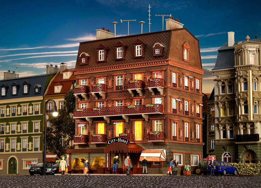 H0 City-Hotel mit LED-Beleuchtung, Funktionsbausatz (035-43782) - Mein MBS Shop