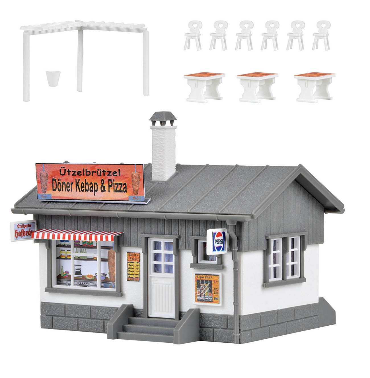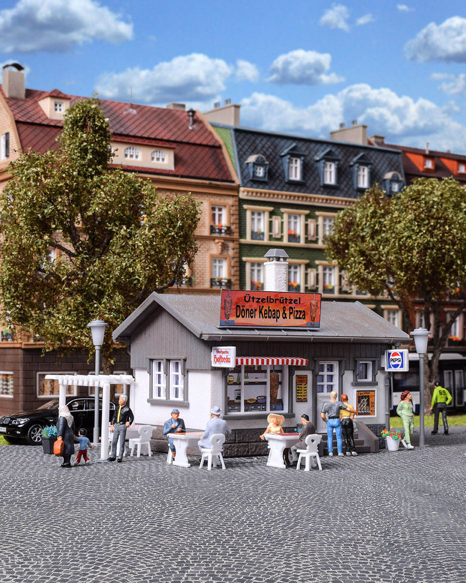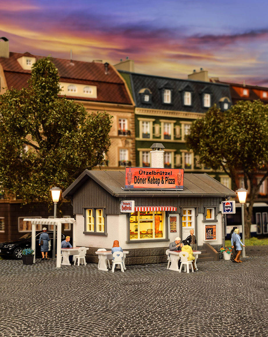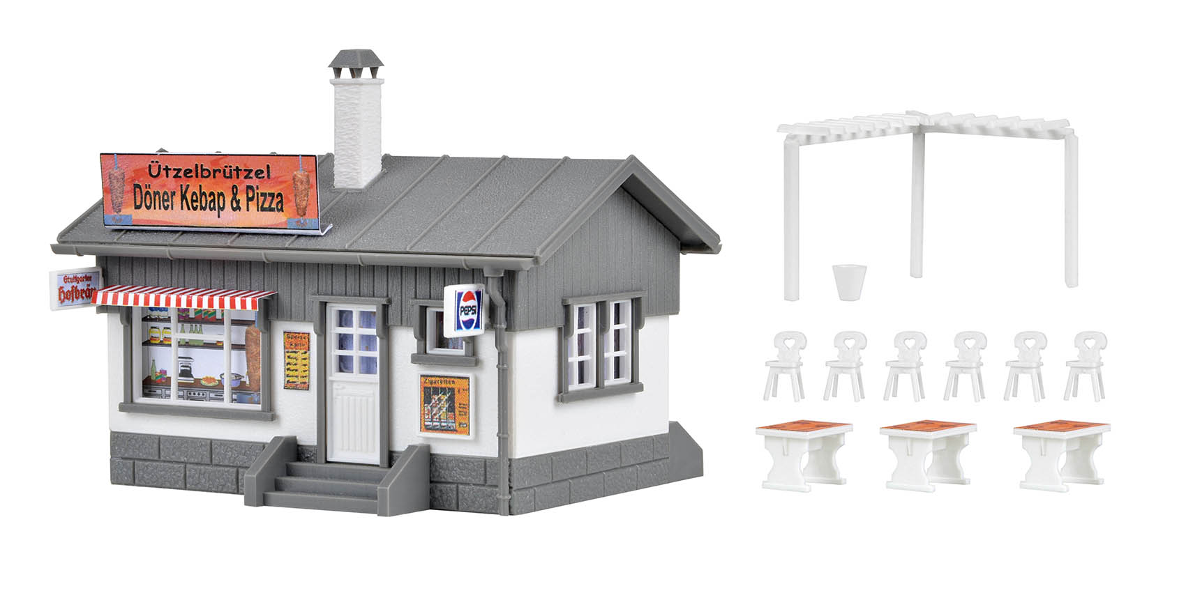 Mit Tischen und Stühlen zur Gestaltung des Außenbereichs.
