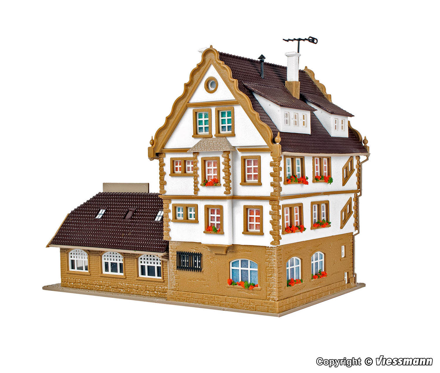 Die beiliegende Innenbeleuchtung setzt das Gebäude ins rechte Licht.