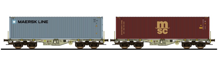 H0 - 2-tlg. Set Containertragwagen 'Maersk Line/MSC', AAEC, Ep. VI