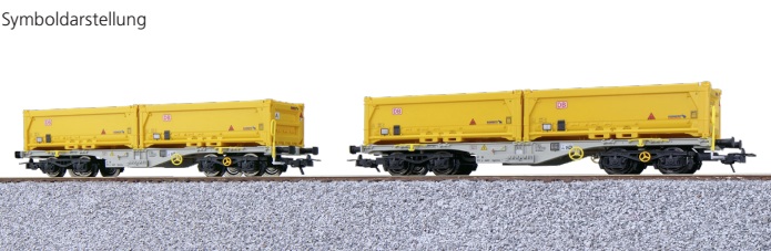 - Beladen entweder mit aufwändig bedruckten, sehr detaillierten Mulden oder mit jeweils zwei 40 Fuß-Containern.