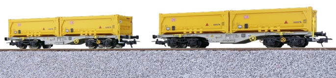 - Beladen entweder mit aufwändig bedruckten, sehr detaillierten Mulden oder mit jeweils zwei 40 Fuß-Containern.