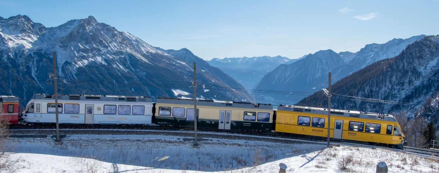 Die Rhätische Bahn (RhB) ist eine der größten privaten Eisenbahngesellschaften der Schweiz und betreibt ein Streckennetz von über 400 km Länge, hauptsächlich im Kanton Graubünden. Die heutige RhB entstand durch den Zusammenschluss der ehemaligen Landquart–Davos-Bahn (LD), der Bernina-Bahn (BB) und der Chur–Arosa-Bahn (ChA) und feiert damit das 100-jährige Bestehen dieses ausgedehnten Netzes. Um diesen Meilenstein zu feiern – und um ihre Wurzeln zu würdigen, sowie das 15-jährige Jubiläum ihrer Aufnahme in das UNESCO-Weltkulturerbe – wurde der Triebzug 3514, ein ABe 8/12 Allegra als Ahnenzug hergerichtet. Jeder Wagen des dreiteiligen Zuges ist mit einem anderen Design versehen, das die Lackierungen der drei Vorgängerunternehmen widerspiegelt, auf deren Strecken der Allegra heute verkehrt. Mit dieser auffälligen Optik, die eine visuelle Reise durch die Geschichte der RhB bietet, erhielt der Zug den Spitznamen Ahnenzug.