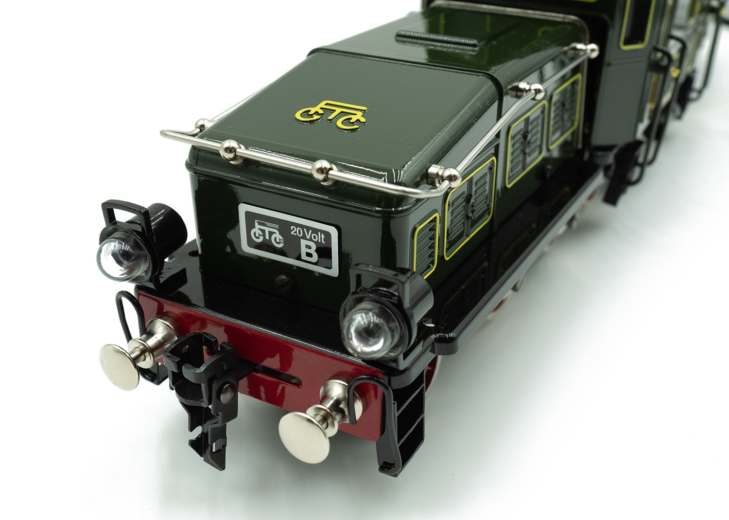 Modell: Fahrwerk und Aufbau aus Zinkdruckguss. Antrieb auf beiden Drehgestellen mit 2 Motoren. Mit Digital-Decoder mfx. 2-Lichtspitzensignal mit Lichtwechsel 2x weiß, konventionell in Betrieb, digital schaltbar.Länge über Puffer 43,5 cm.