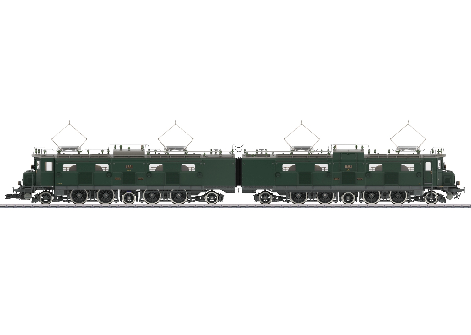 Komplett neukonstruiertes, höchstdetailliertes High-Class Vollmetall-Profimodell. Fahrgestell mit Hauptrahmen aus Zinkdruck- und Messingguss, Lokaufbau aus Messingblech. Ansetzteile aus Messing-Schleuderguss. Mit mfx Digital-Decoder und 32 Funktionen, Stromspeicher parametrisierbar. Umfangreiche Licht- und Soundfunktionen. Für ein qualitativ höchstwertiges Sounderlebnis sorgt je Lokteil ein Markenlautsprecher in HiFi-Qualität.Betrieb mit Wechselstrom, Gleichstrom, Märklin Digital und DCC möglich. Je Lokteil ein zentral eingebauter und eigens für dieses Modell konstruierter Bühler-Hochleistungsmotor mit Antrieb auf alle Achsen! Im Digitalbetrieb motorisch heb- und senkbare, vorbildgerechte Scherenstromabnehmer. Weißes 3-Licht-Spitzensignal mit LEDs im Wechsel mit weißem schweizerischen Schlusslicht, digital schaltbar. Ebenso separat digital schaltbar ist das schweizer Falschfahrsignal. Warmweiße LED-Beleuchtung im Führerstand und im Maschinenraum/-gang, ebenso sind die Fahrpulte in den Führerständen beleuchtet. Führerstandstüren zum Öffnen. Aufwendige, höchstdetaillierte Nachbildung der Inneneinrichtung von Führerstand und Maschinenraum, Führerstand mit eingebauter Lokführerfigur. Griffstangen aus Metall und viele weitere angesetzte Details wie: Schilder, Scheibenwischer, Pfeife u.a. Pufferbohlen mit Federpuffern und angesetzten Bremsleitungen. Hinten serienmäßig montierte, fernbedienbare Telexkupplung hinten gegen beigefügte Schraubenkupplungen austauschbar. Vorne vorbildgerechte Schraubenkupplung. Telexkupplung für vorn im Lieferumfang. Mit Echtheitszertifikat und einer in Metall gegossenen Replik des Fabrikschildes vom großen Vorbild.Befahrbarer Mindestradius 1.020 mm. Länge über Puffer 106 cm.Gewicht ca. 12,2 Kg.