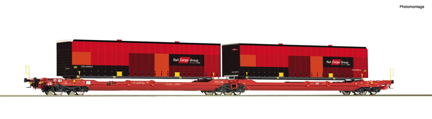 Mit neuer Betriebsnummer, Wagen aus Metalldruckguss, Beladen mit zwei 45'-Wechselbrücken im neuen Rail Cargo Group Design
