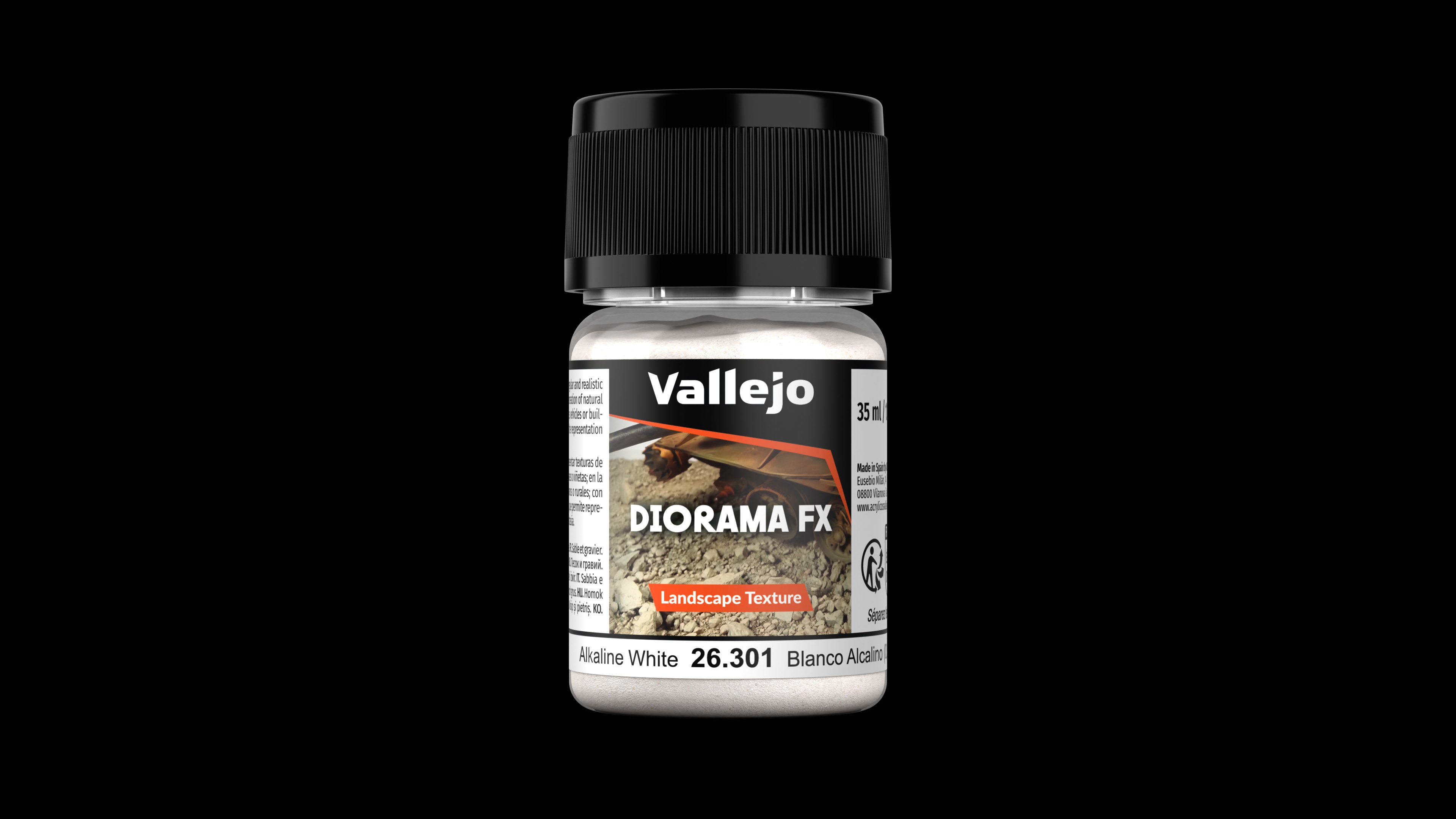 Boden-Texturen von Vallejo in verschiedenen Farben und Körnungen. Alkalisches Weiß für die Nachbildung von trockenen und kalkhaltigen Böden