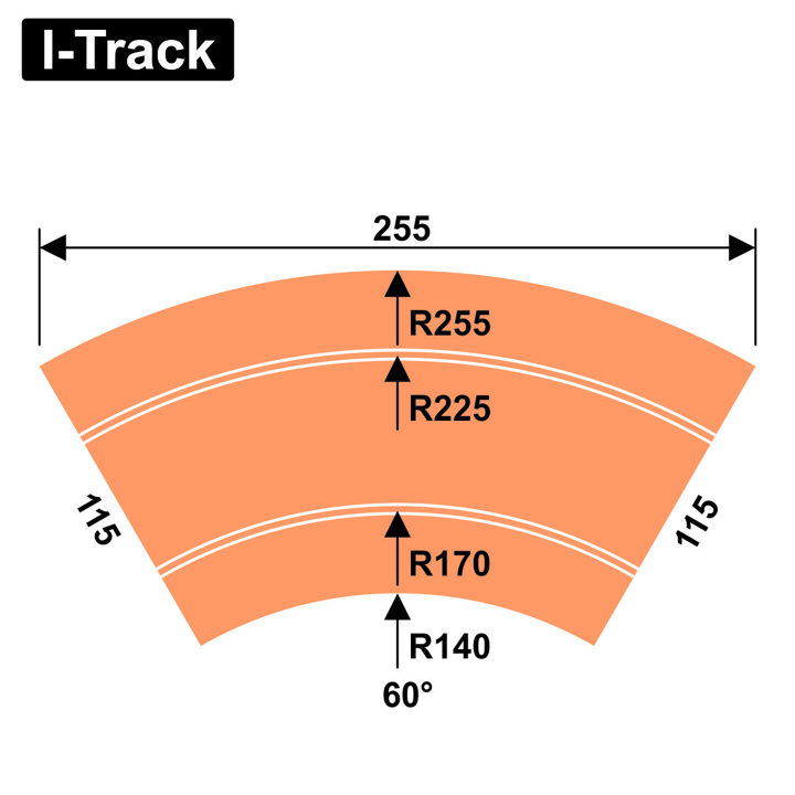 H0 - Gebogene Straßenbettung 60°, R17/225 mm CarMotion (6 Stück)