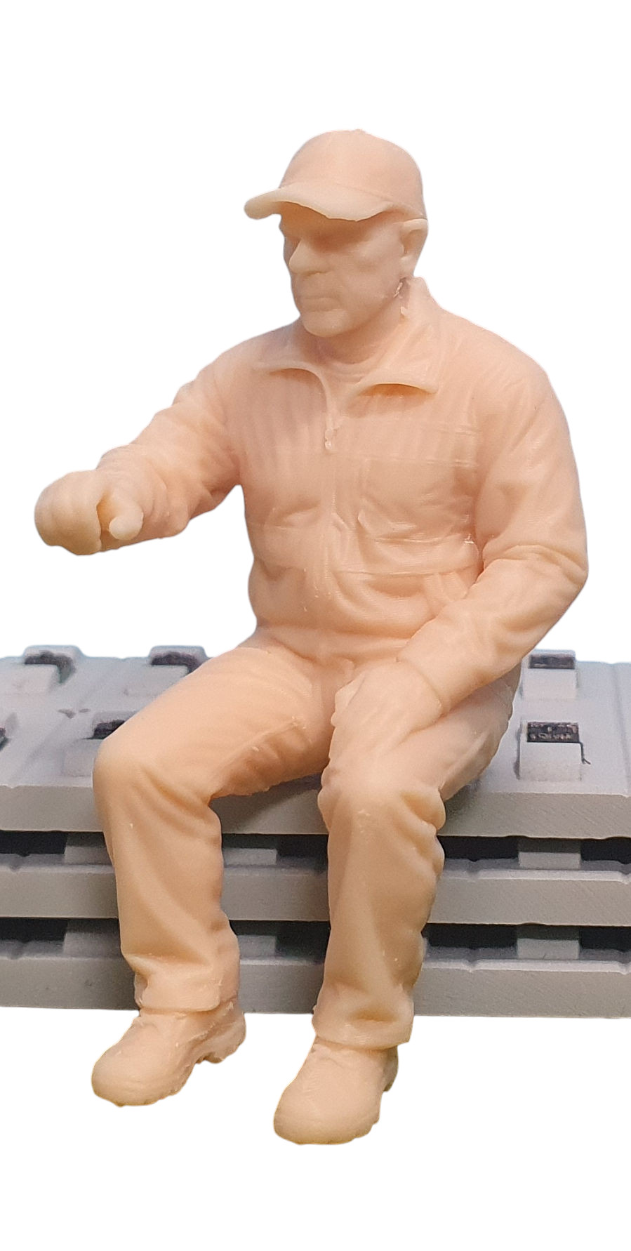 Spur 1 Modellfigur Lokführer Karsten sitzend 1:32 Bahnpersonal