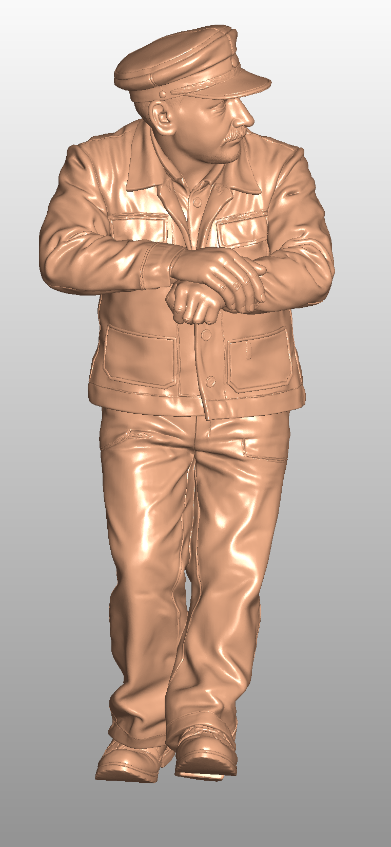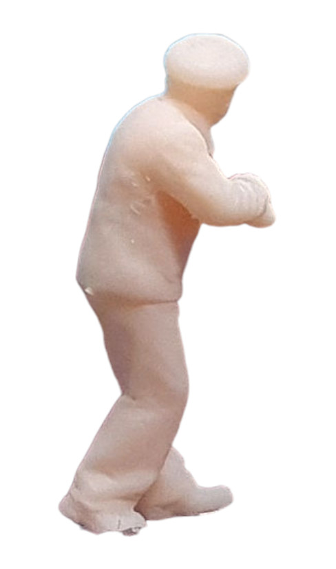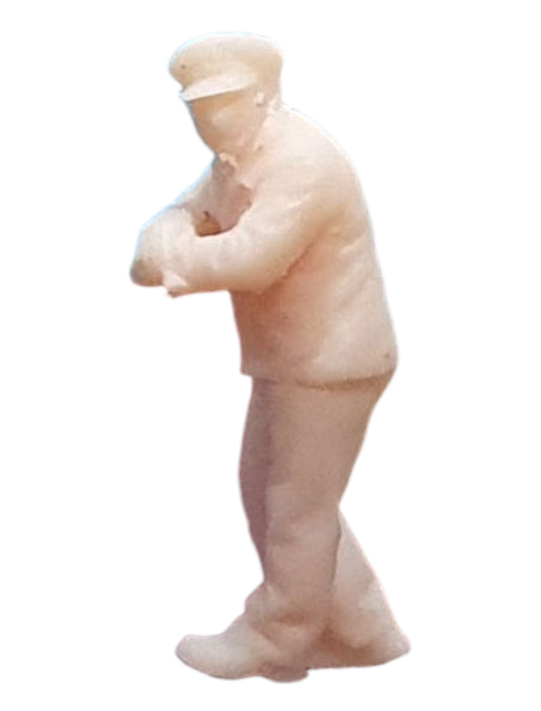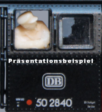 Mit seiner nach vorne geneigten Haltung und den eng geführten Armen ist die Figur "Rudi" speziell für den Einsatz im Lokführerstand konzipiert. Die Pose wirkt funktional und vorbildgerecht – als würde der Lokführer aufmerksam aus dem Seitenfenster blicken oder Rangierbewegungen begleiten.