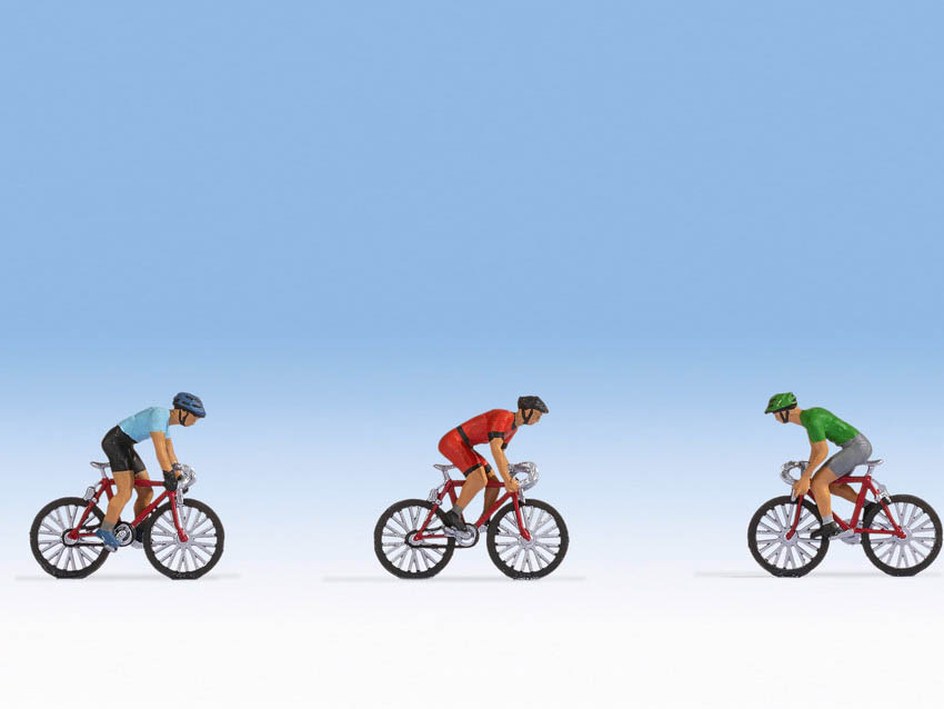 Die Figuren von NOCH in der Spurweite N "Rennradfahrer" passen perfekt in eine bereits schön gestaltete Modelllandschaft, mit viel Natur, in der Fahrradfahrer gerne ihre freie Zeit verbringen. Neben Mountainbikern oder einer Familie, die einen entspannten Ausflug mit dem Rad macht, dürfen "Rennradfahrer" nicht fehlen! Mit ihrer schnellen Geschwindigkeit fahren sie im Sommer weiter Strecken, sind in jeder NOCH Modelllandschaft ein echter Hingucker und beleben das Diorama. Spaß und Schweiß garantiert!
