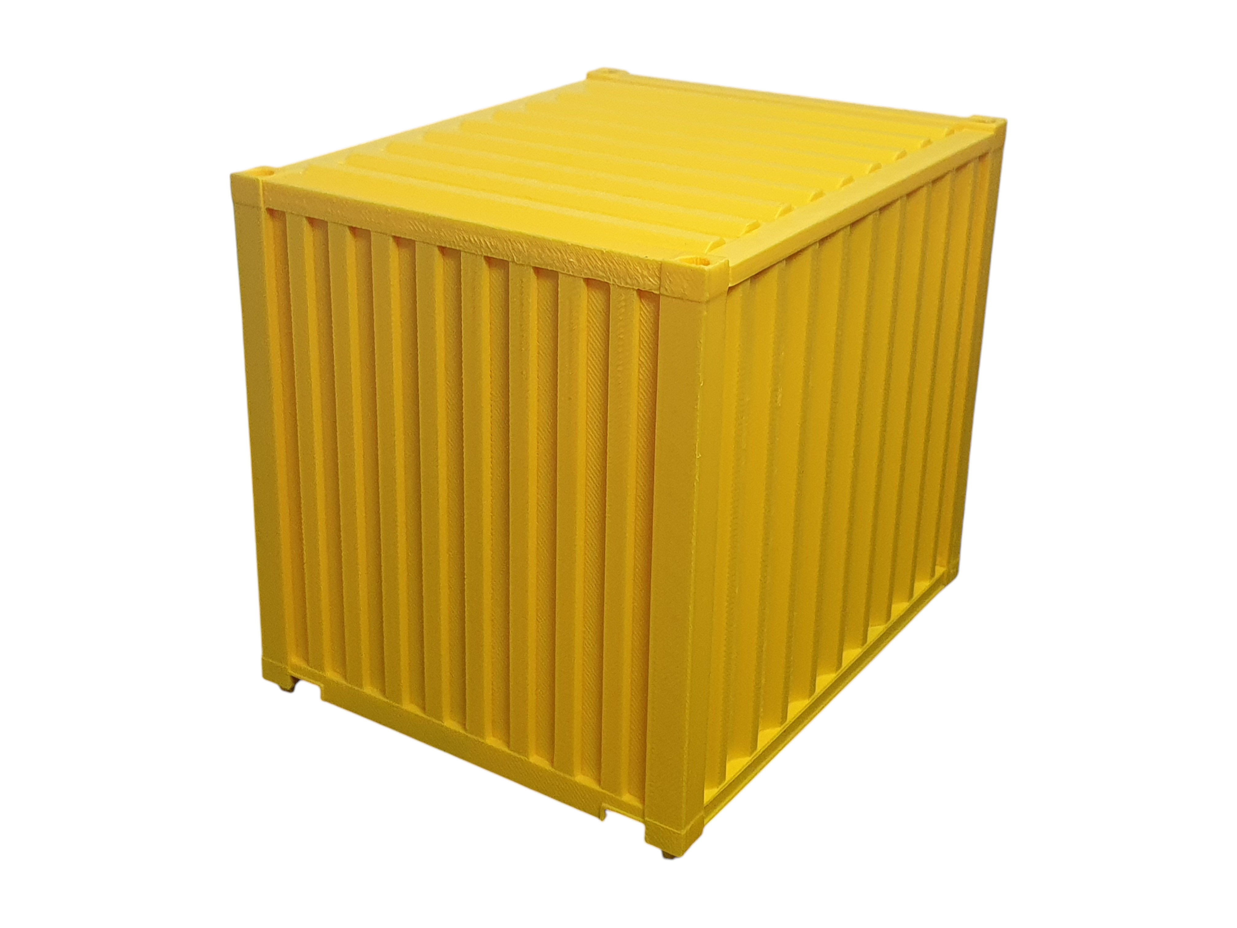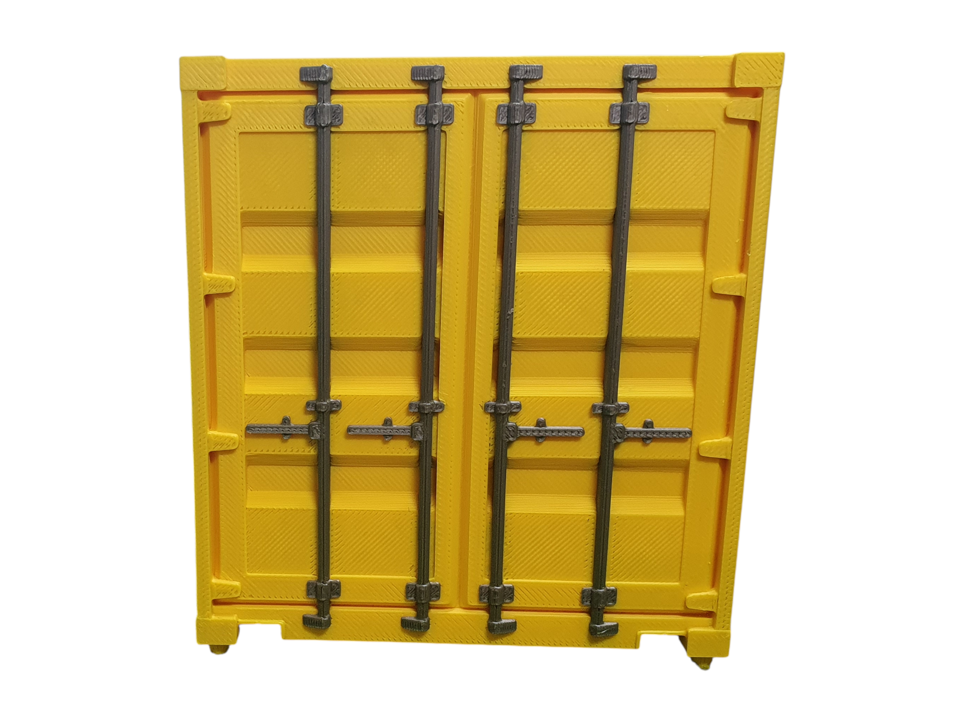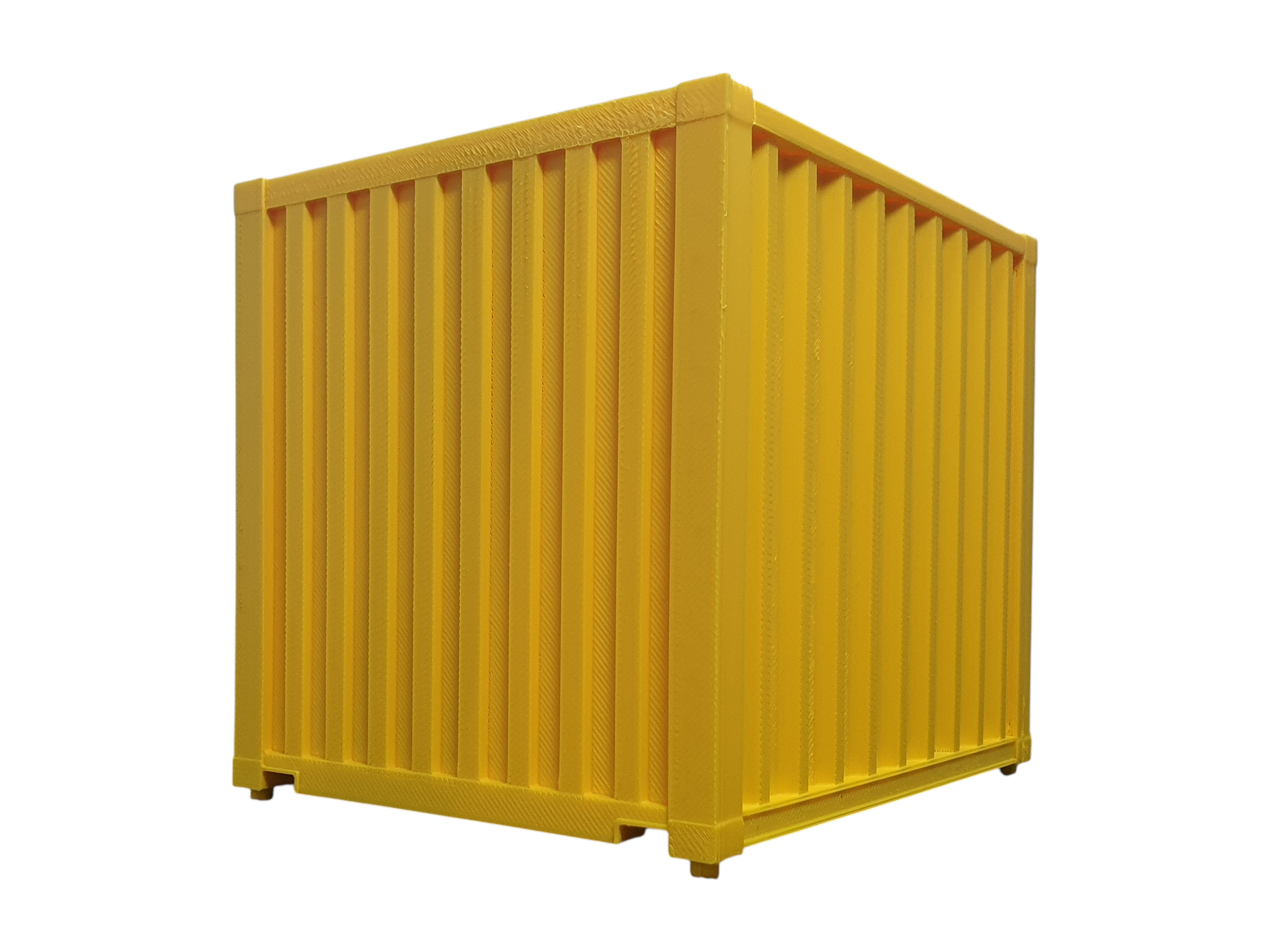 Gelber 10-ft-Container als Ladegut für Spur G – detailreich ausgeführt mit farblich abgesetzten Türbeschlägen für eine realistische Wirkung