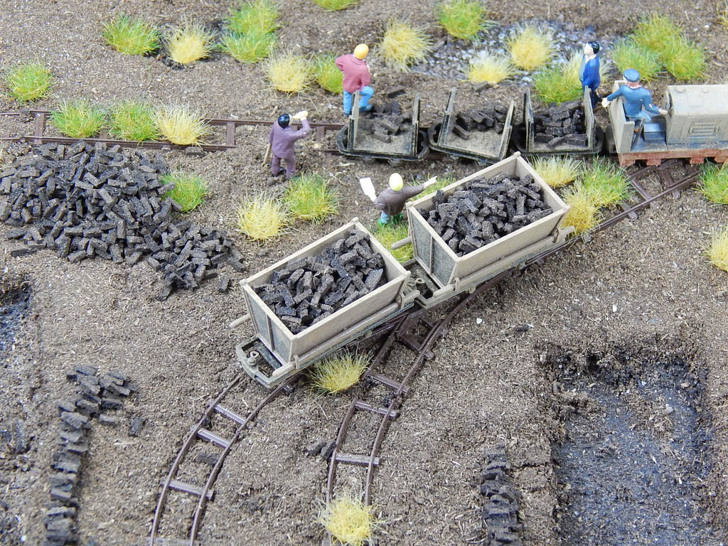 Eingesetzt und verwendet als Ladegut in Hochbordwagen oder Torfloren im Moor, als Detail beim Torfabbau, als gehäufte Ware an der Laderampe, als Schüttgut für Dioramen...