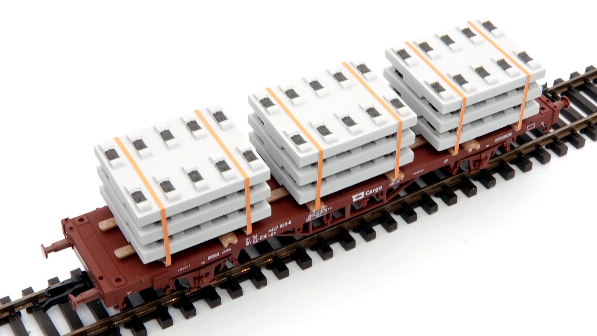 TT Ladegut - 3 Stapel Feste Fahrbahn für Brücken mit Zurrgurten auf Holzbalken, passgenau gefertigt für den Schwerlastwagen Sammp 705