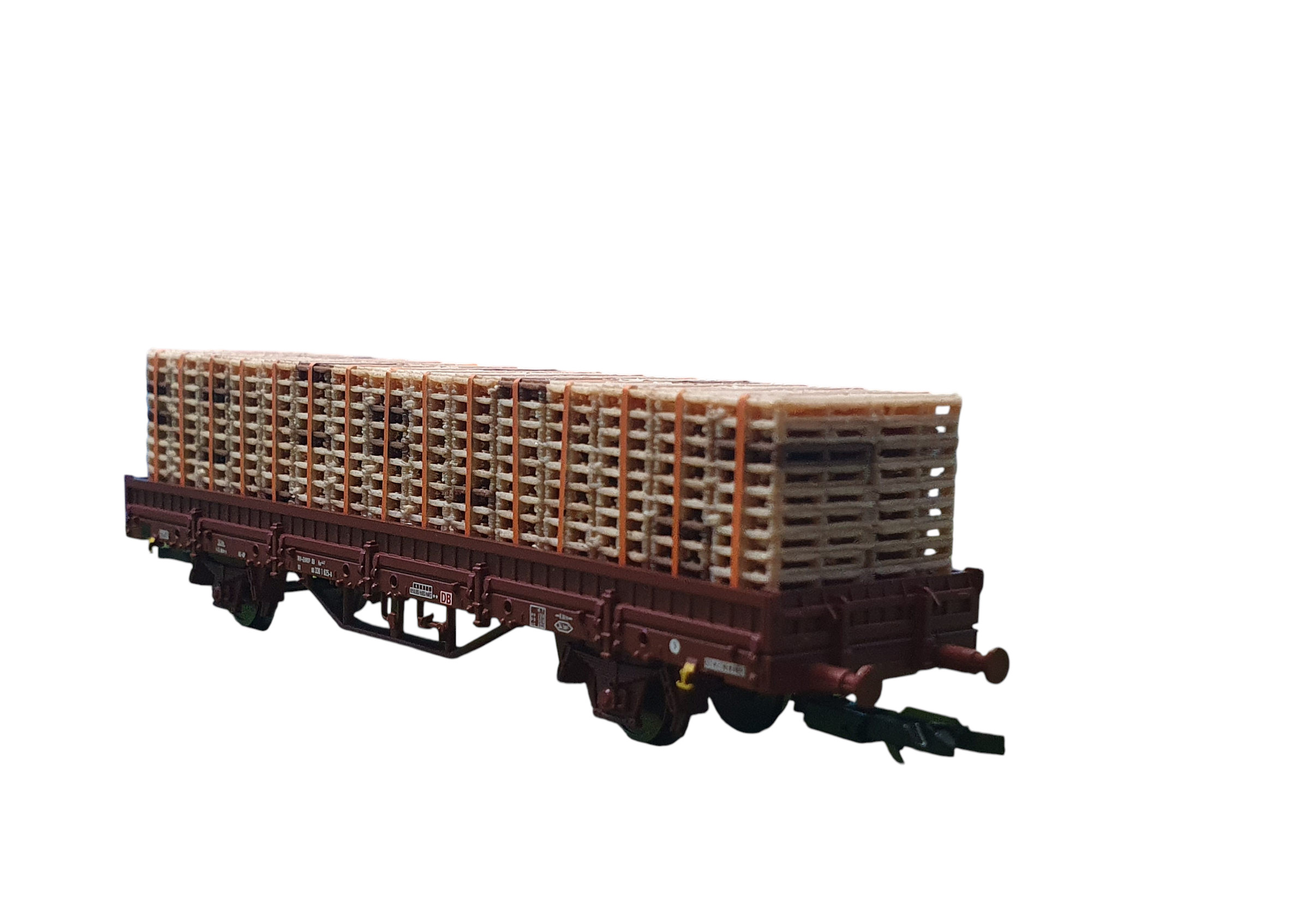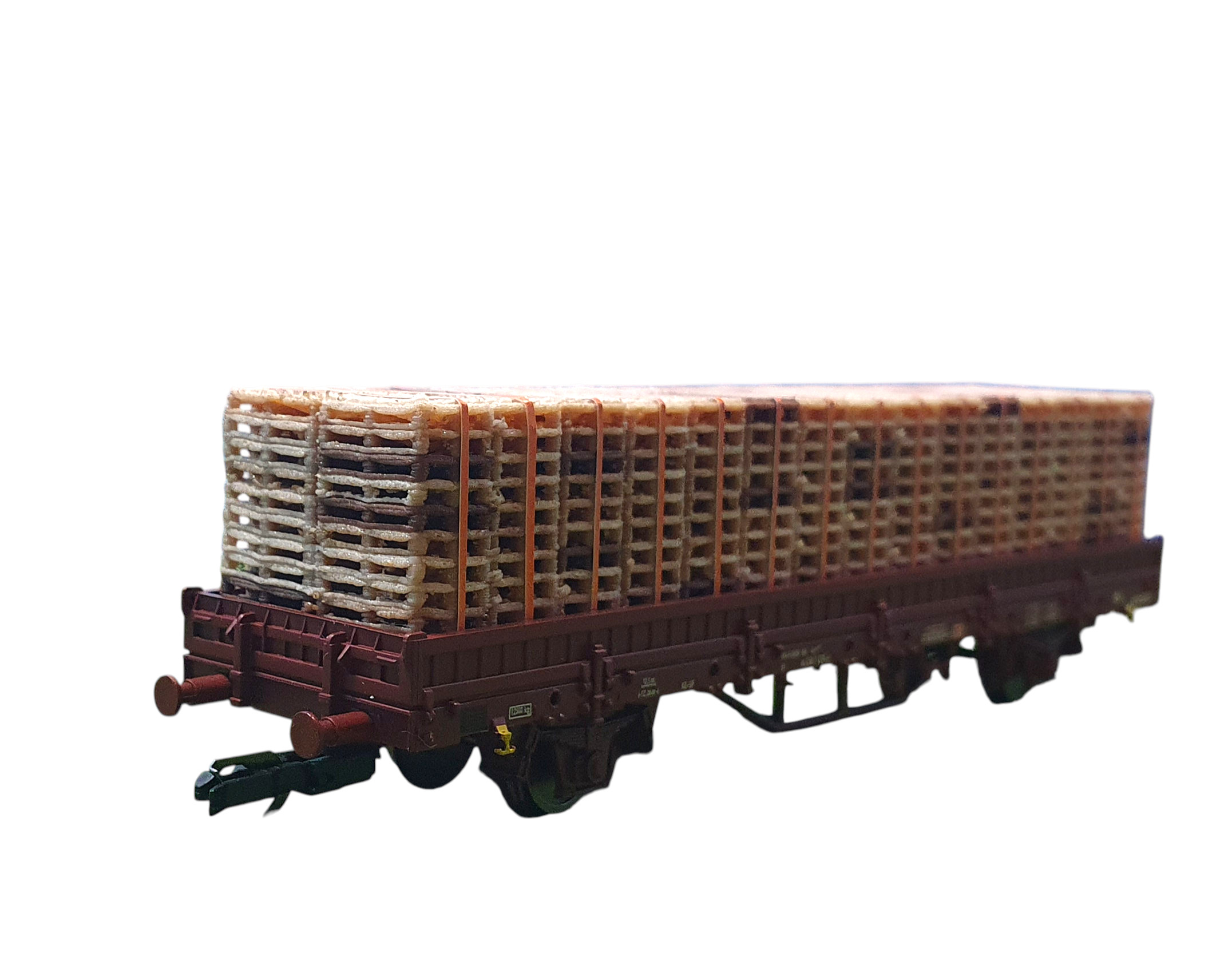 Palettenstapel in drei Holztönen für besonders realistische Wirkung: gesamt 300 Europaletten gestapelt