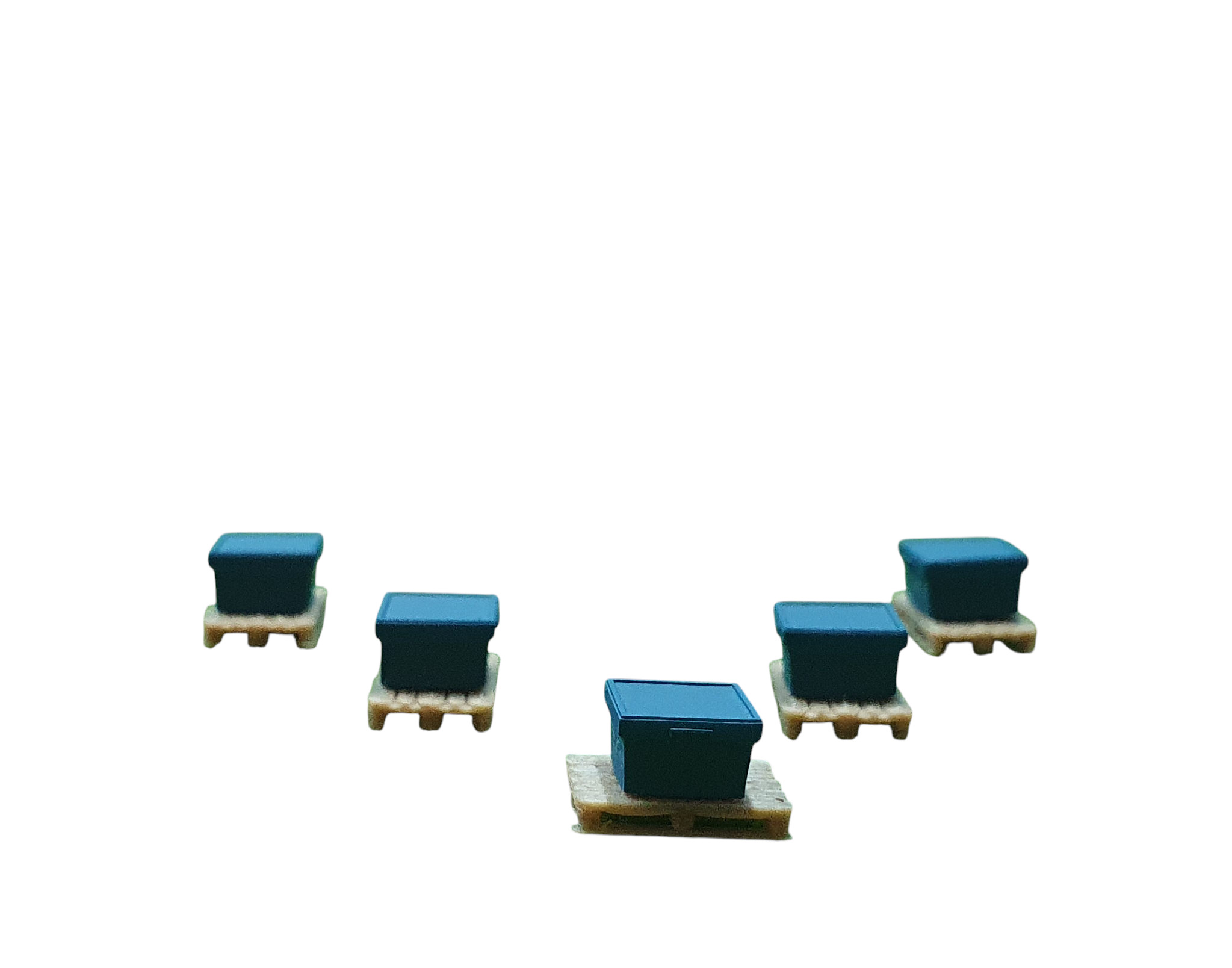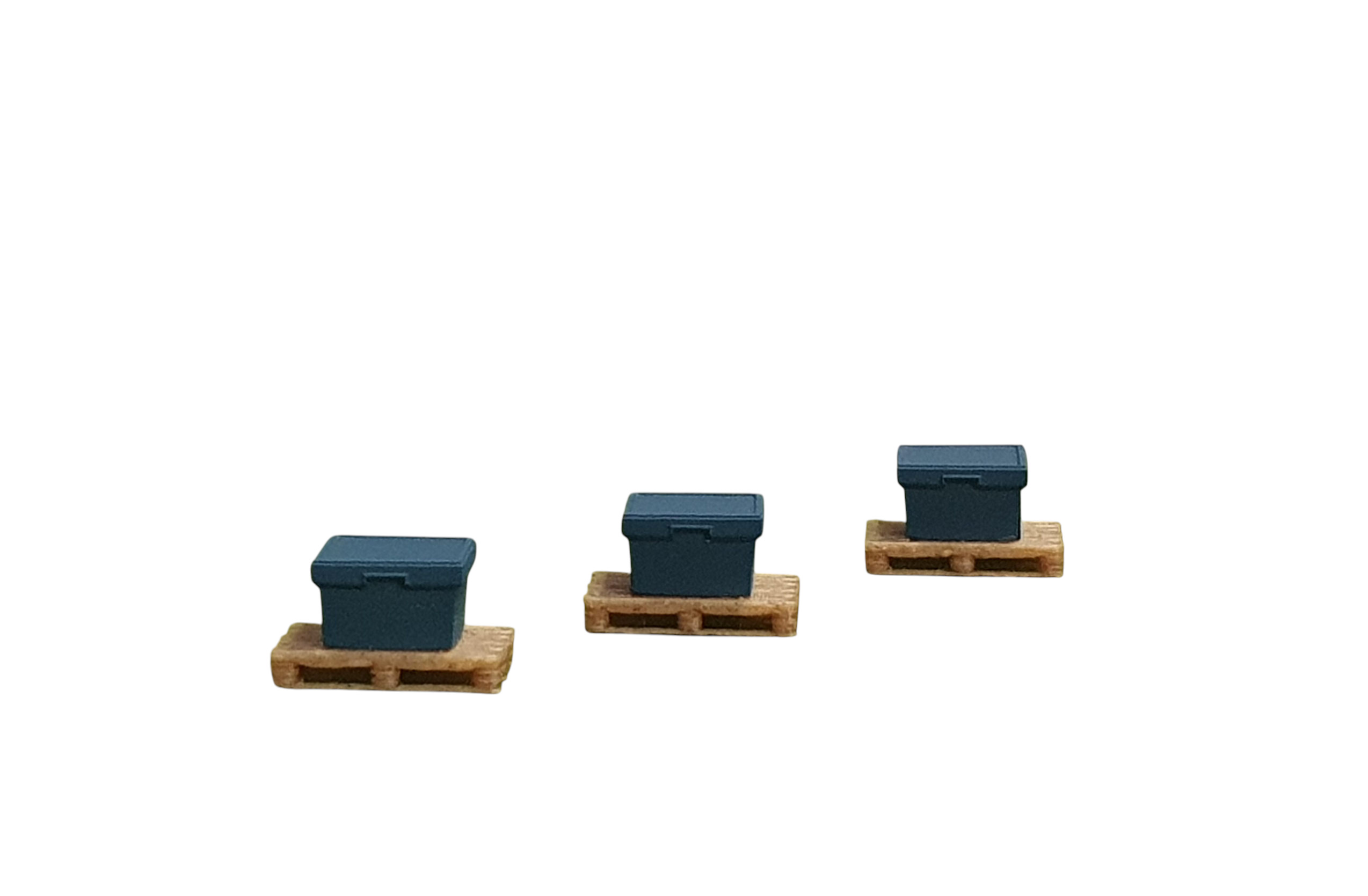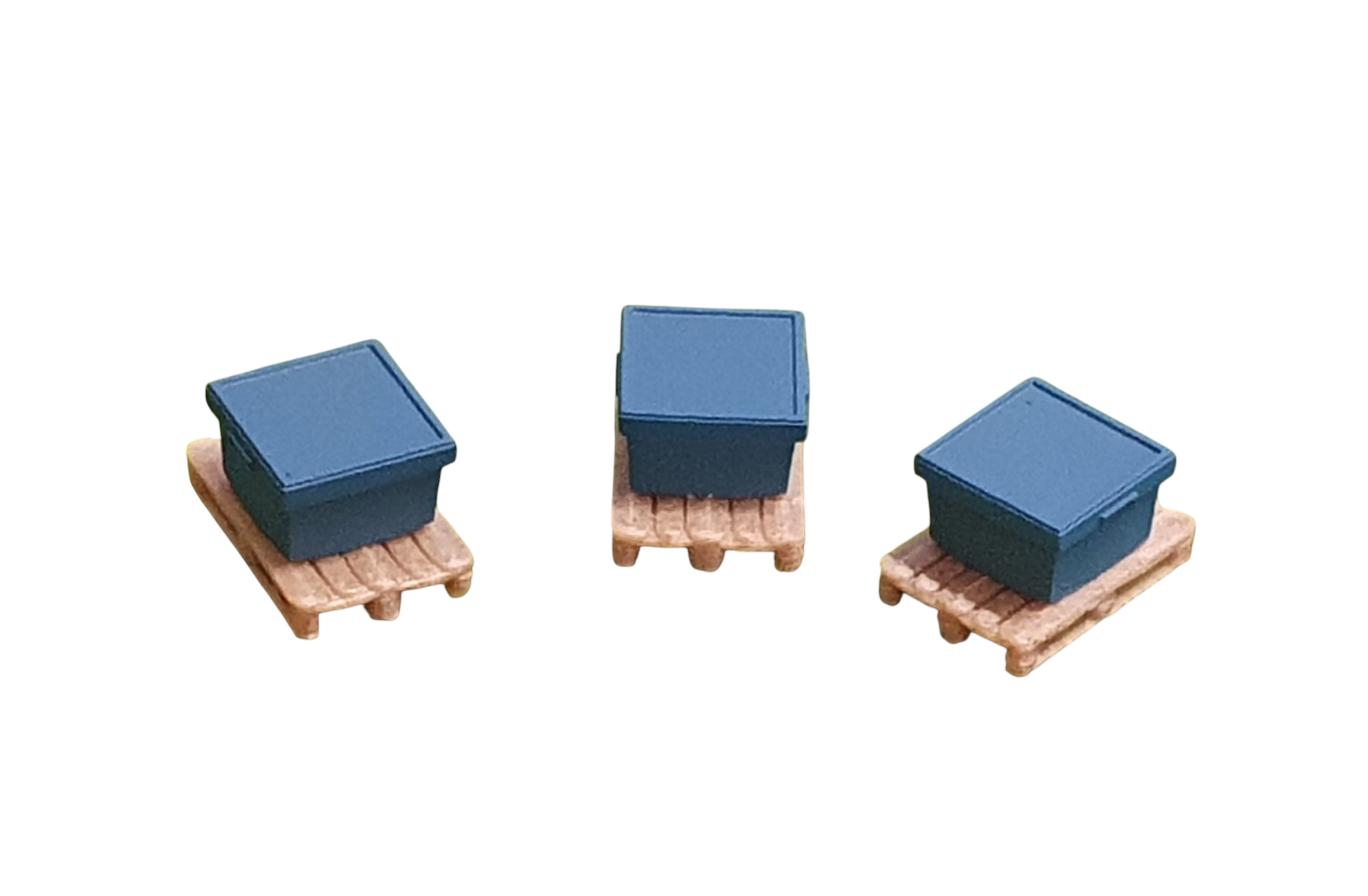 Set: Fünf blaue Zubehörkisten auf Palette (Holznachbildung)