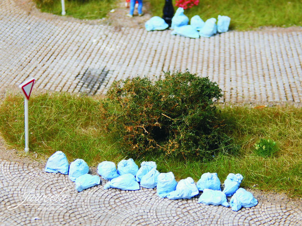 Wenn Minis ihren Müll entsorgen, dann stopfen sie den auch im Diorama in Abfallsäcke. Da wird dann alles reingepackt - eckiger, runder, länglicher Müll; manchmal reißt auch mal ein Sack, öffnet sich wieder... Wie im Vorbild, so im Modell.